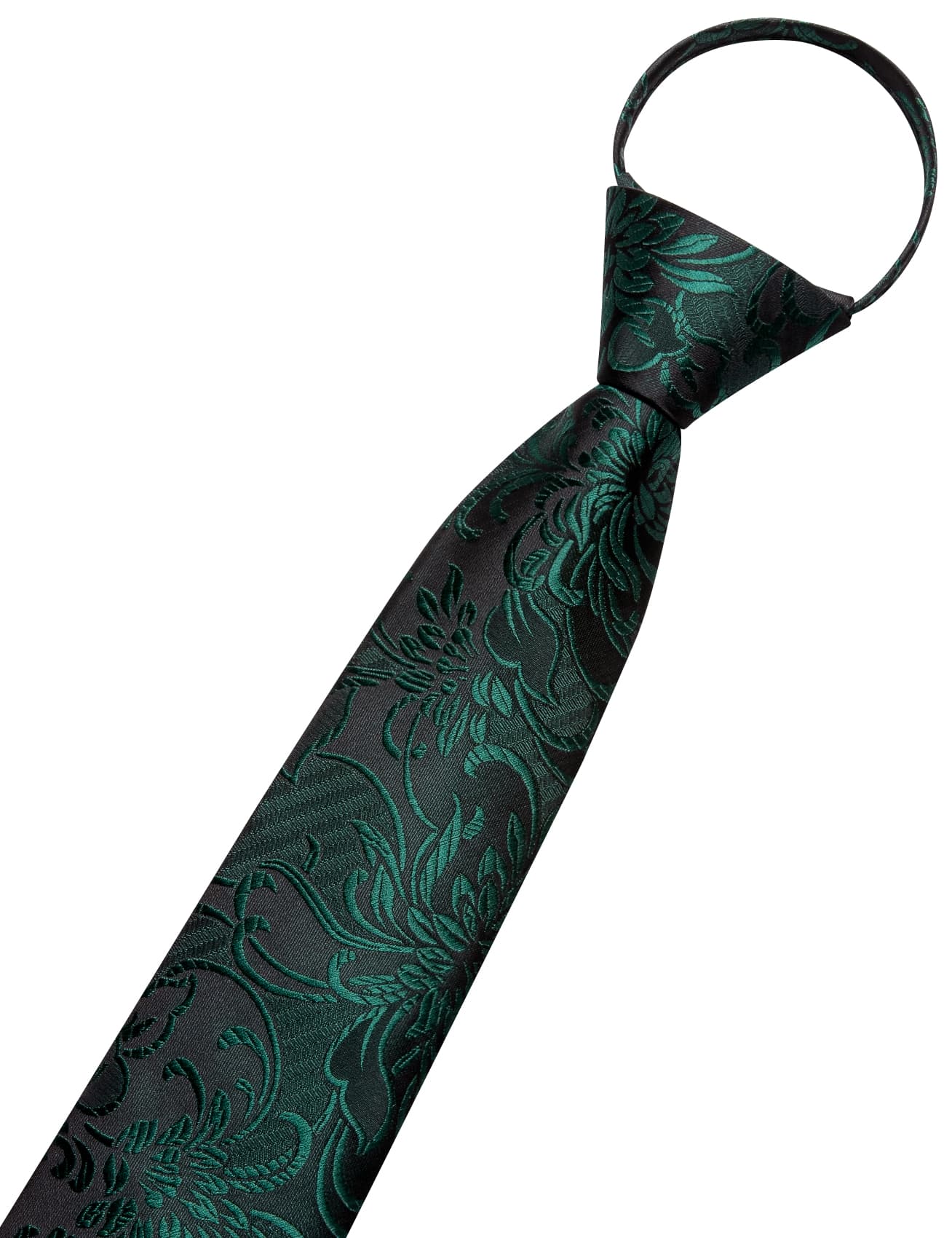 Hi-Tie Dark Green Zipper Ties Black Floral Men's Easy to Wear Tie Set