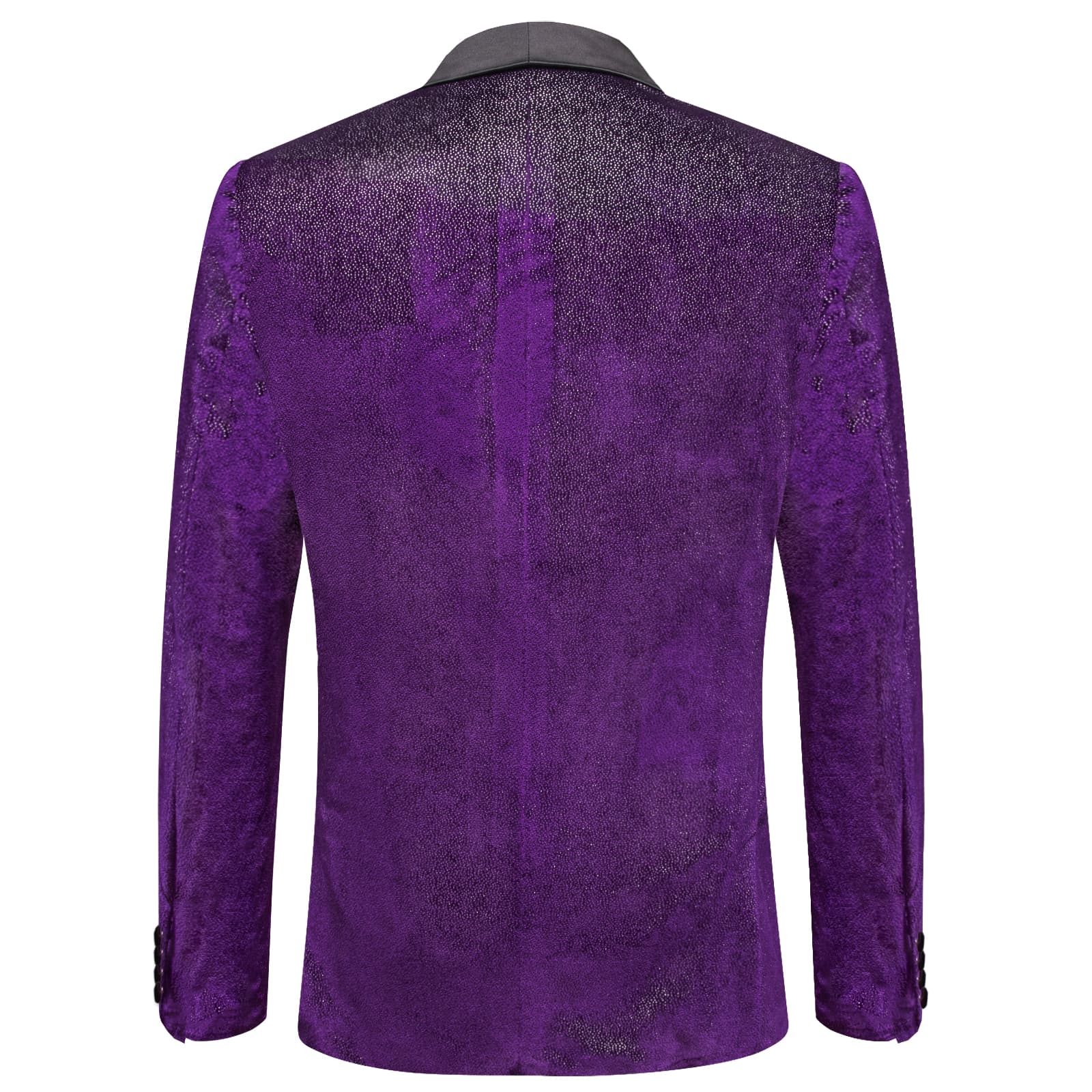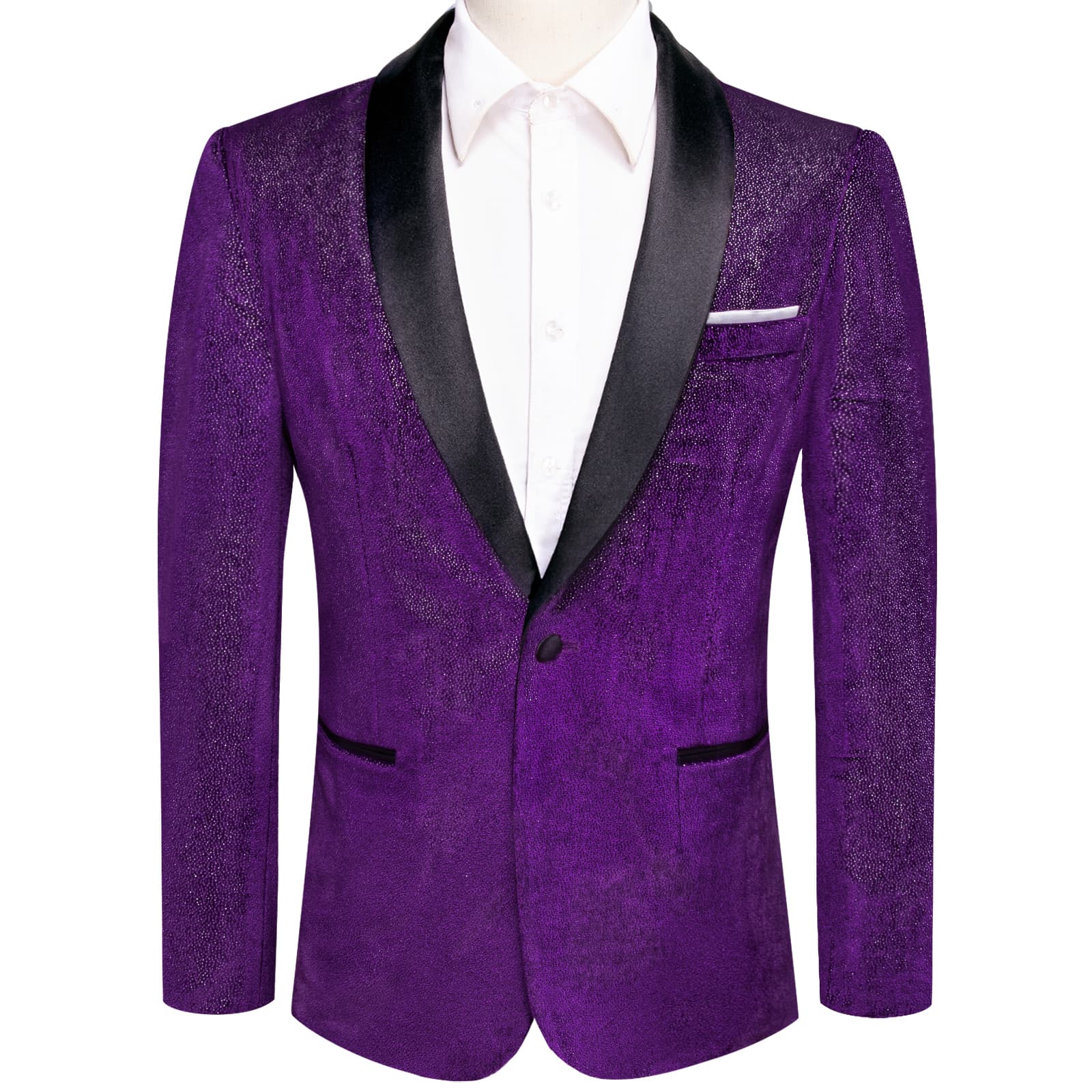 Hi-Tie Velvet Blazer Purple Formal Wedding Suit Shawl Lapel Men's Top