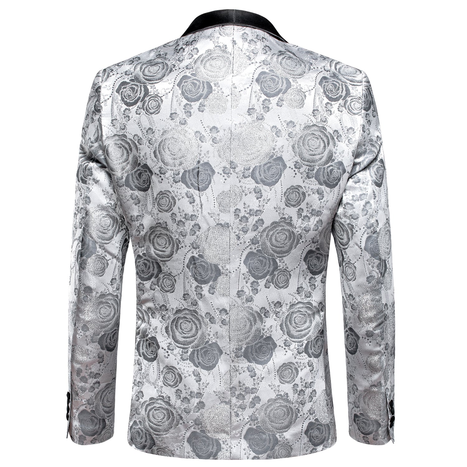 Hi-Tie Wedding Blazer Sliver Grey Roses White Floral Men's Suit Set