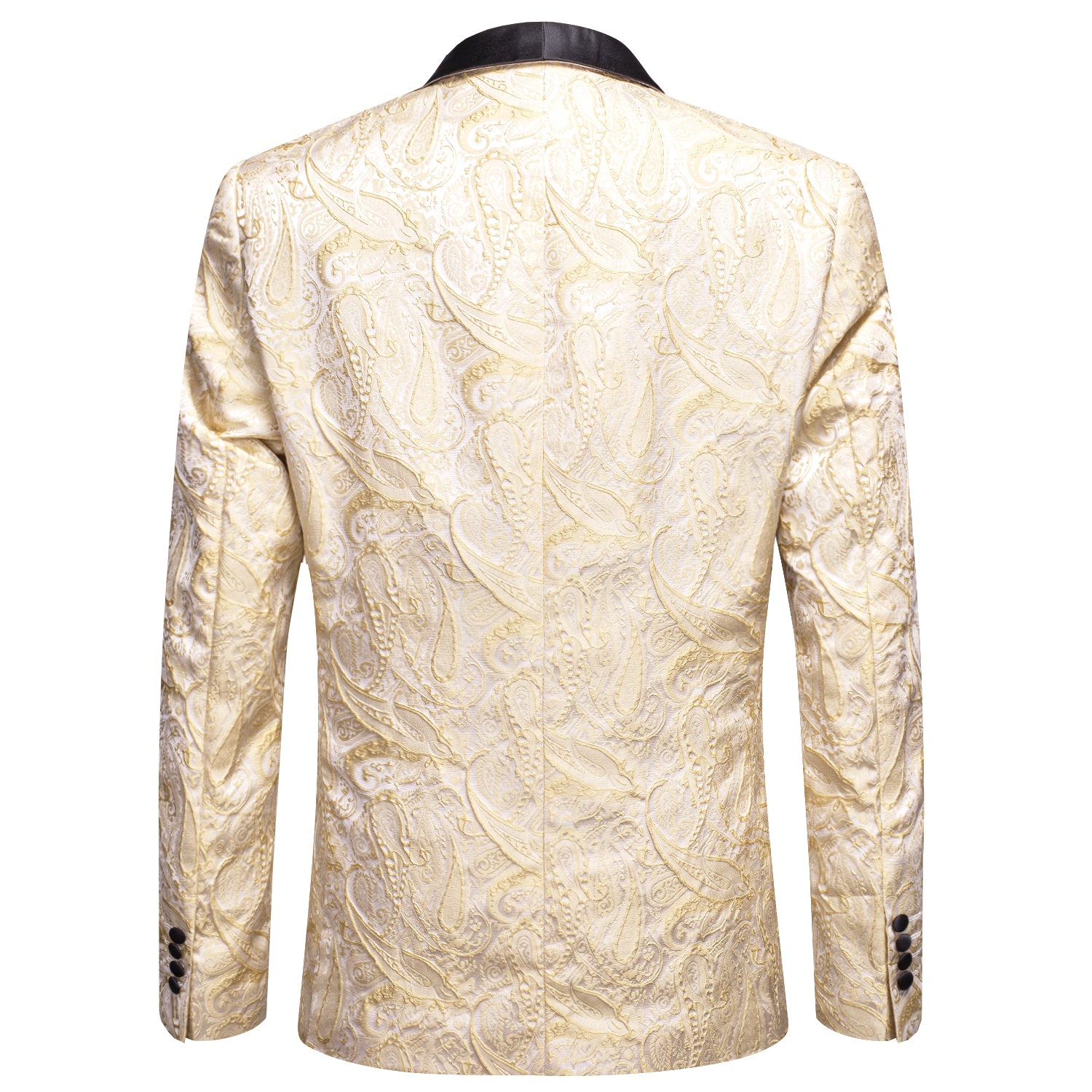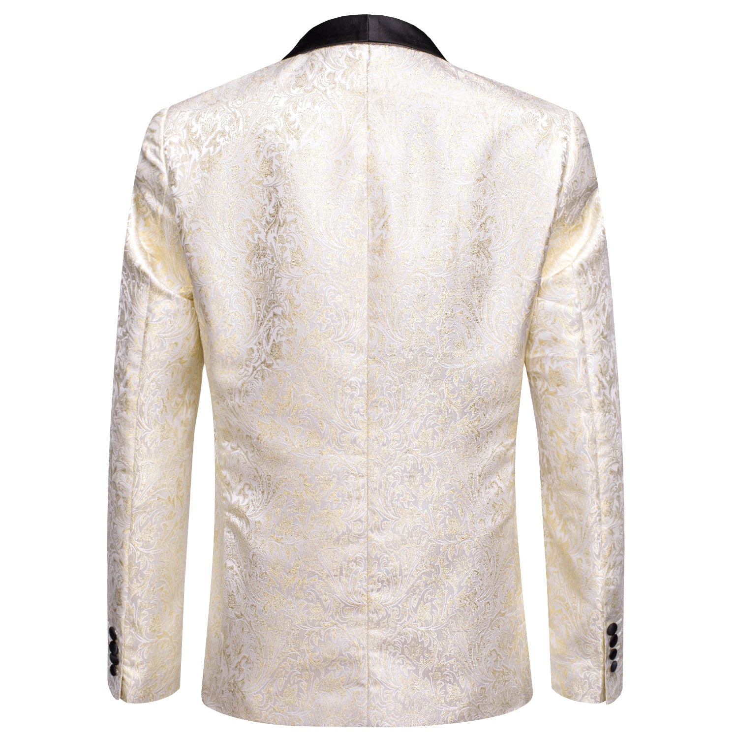 Hi-Tie Wedding Top Luxury Champagne White Paisley Men's Suit Set