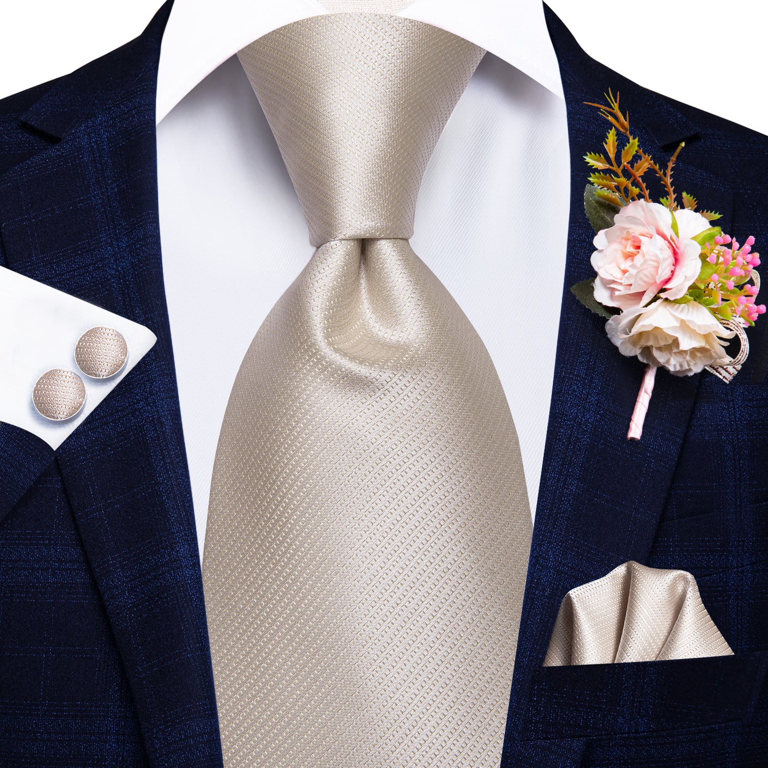 Hi-Tie Beige Paisley Men Tie Handkerchief Cufflinks Set Wedding Brooch