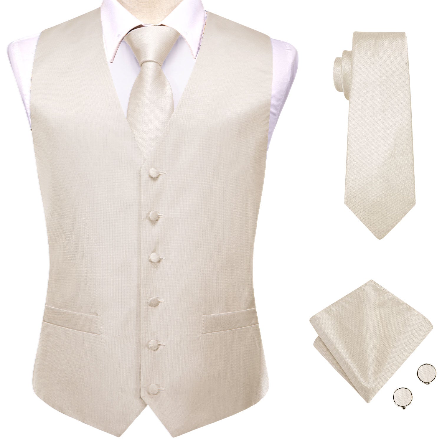 Hi-Tie Champagne Vest Solid Men's Waistcoat Tie Hanky Cufflinks Set