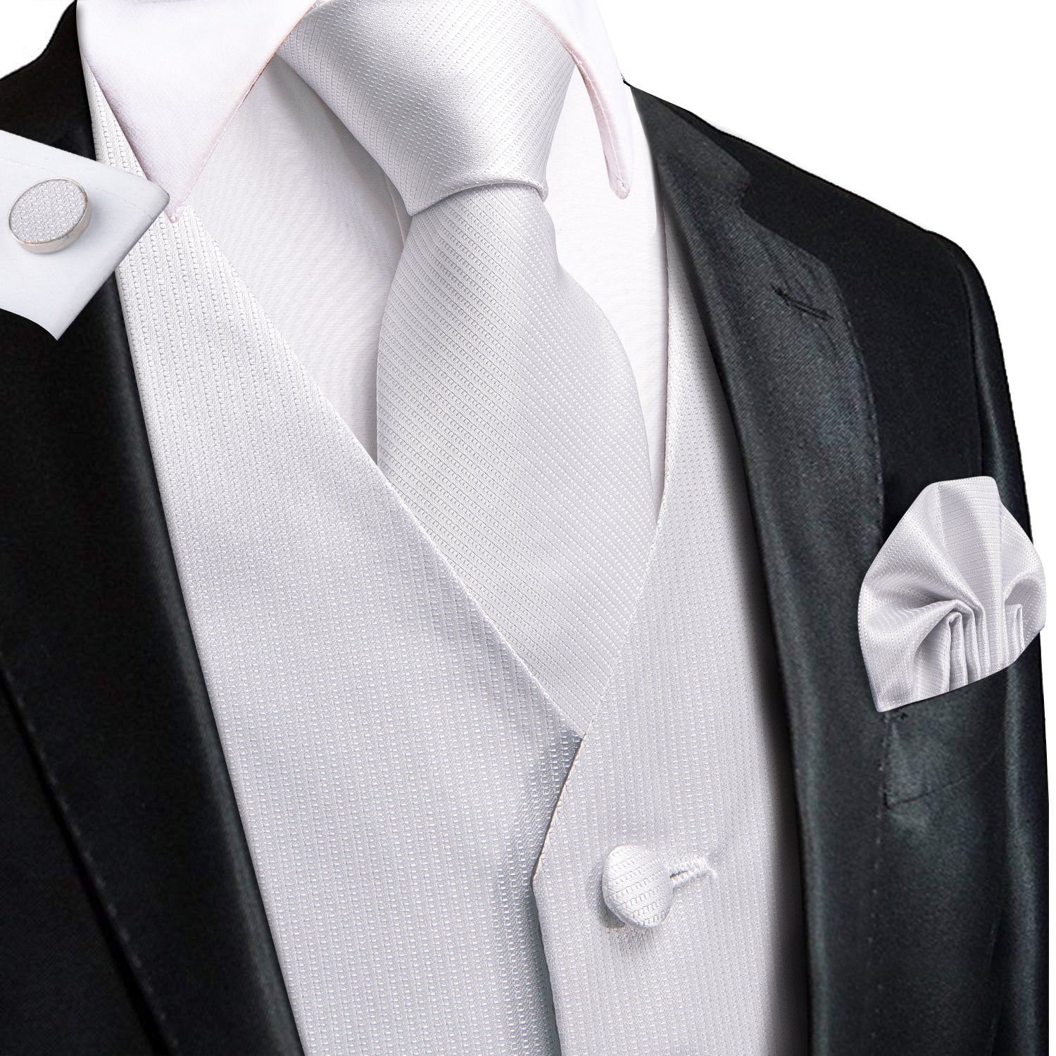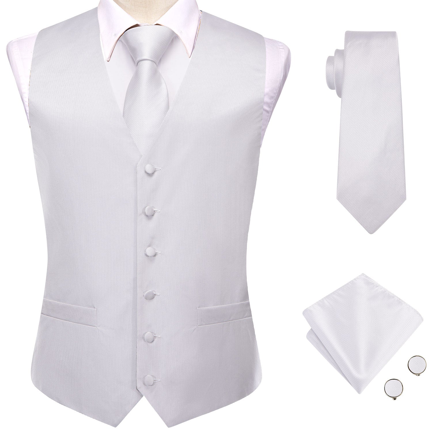 White Solid Men's Vest Hanky Cufflinks Tie Set