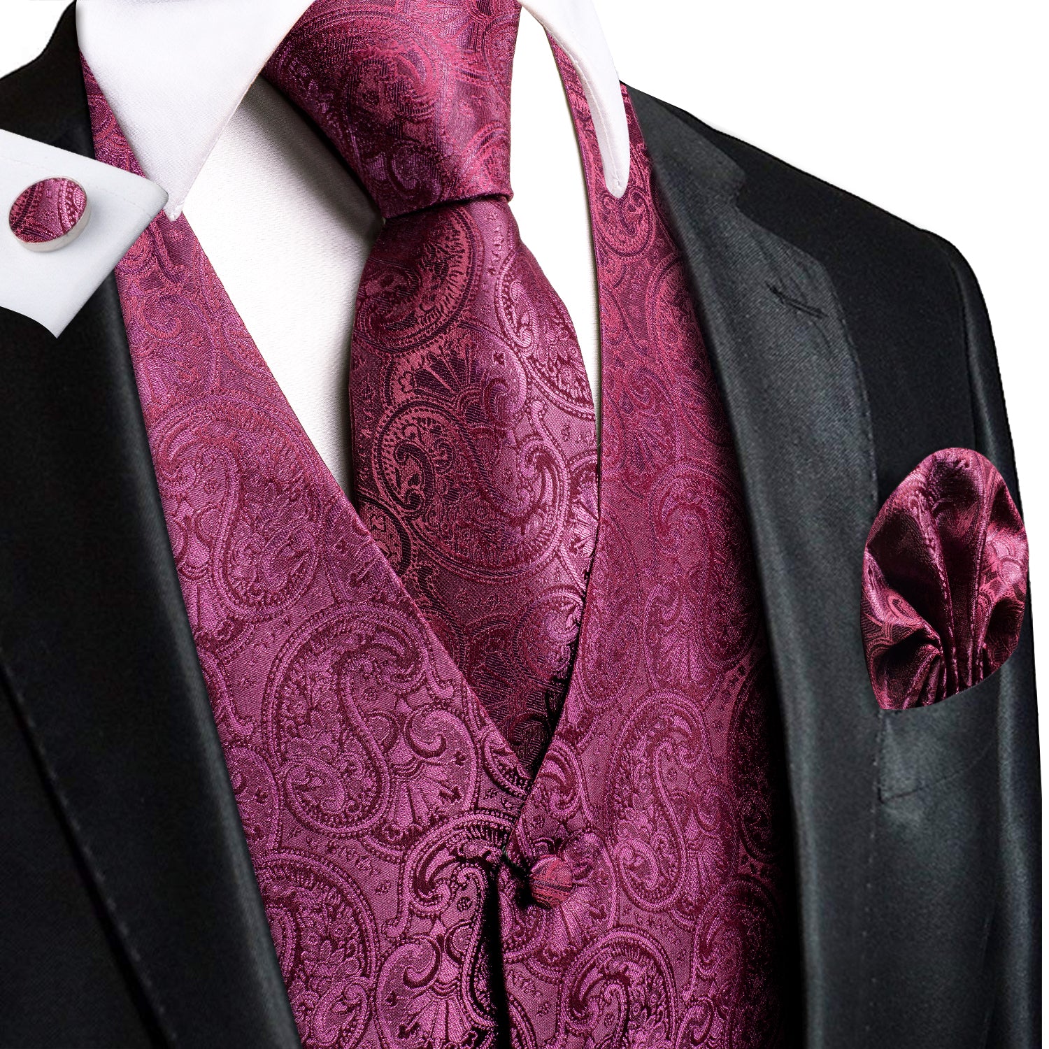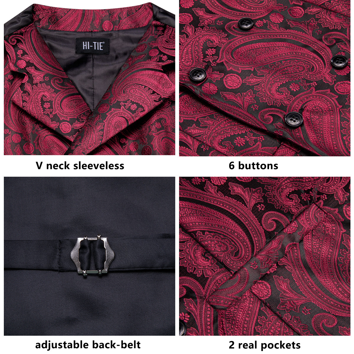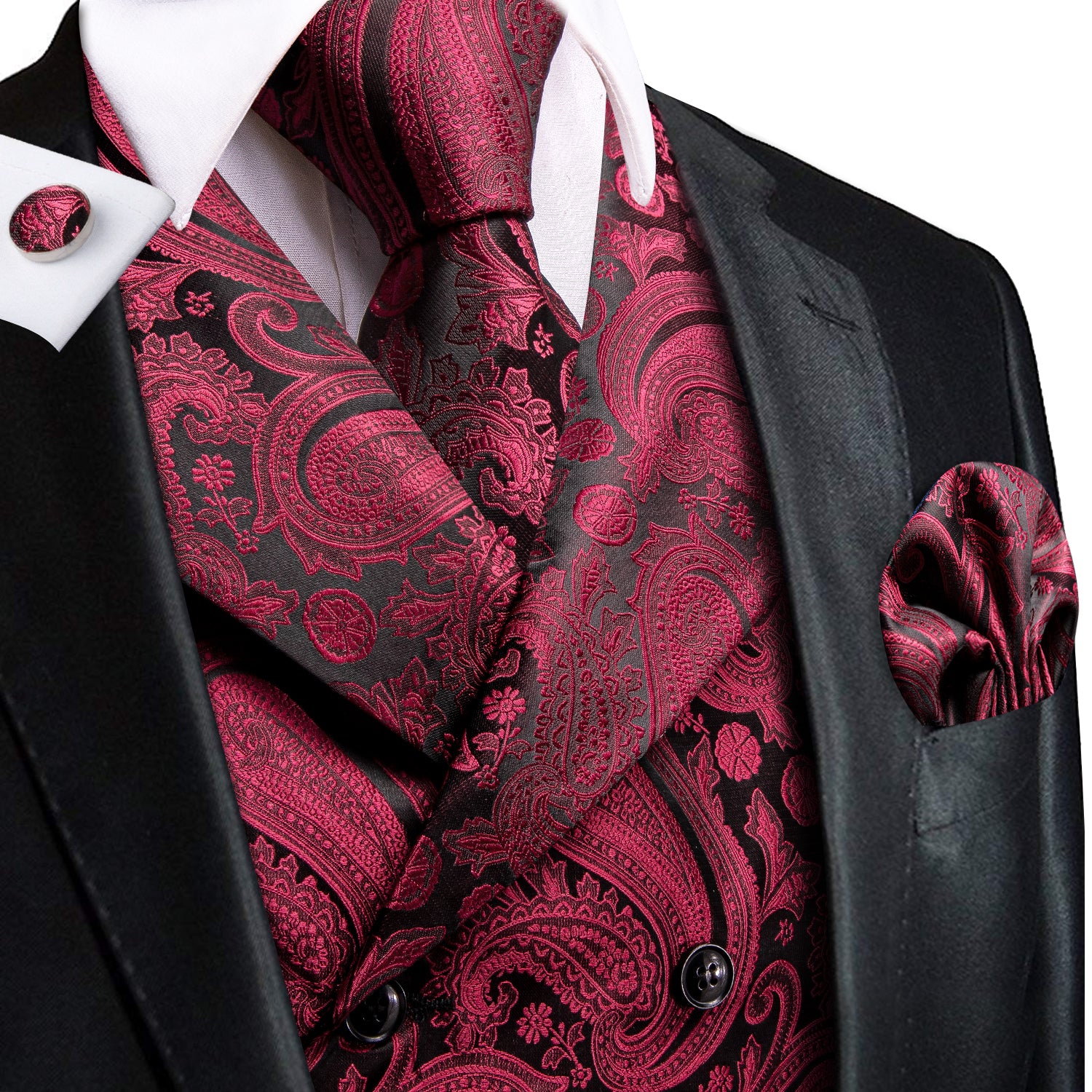 Deep Red Paisley Men's Vest Hanky Cufflinks Tie Set