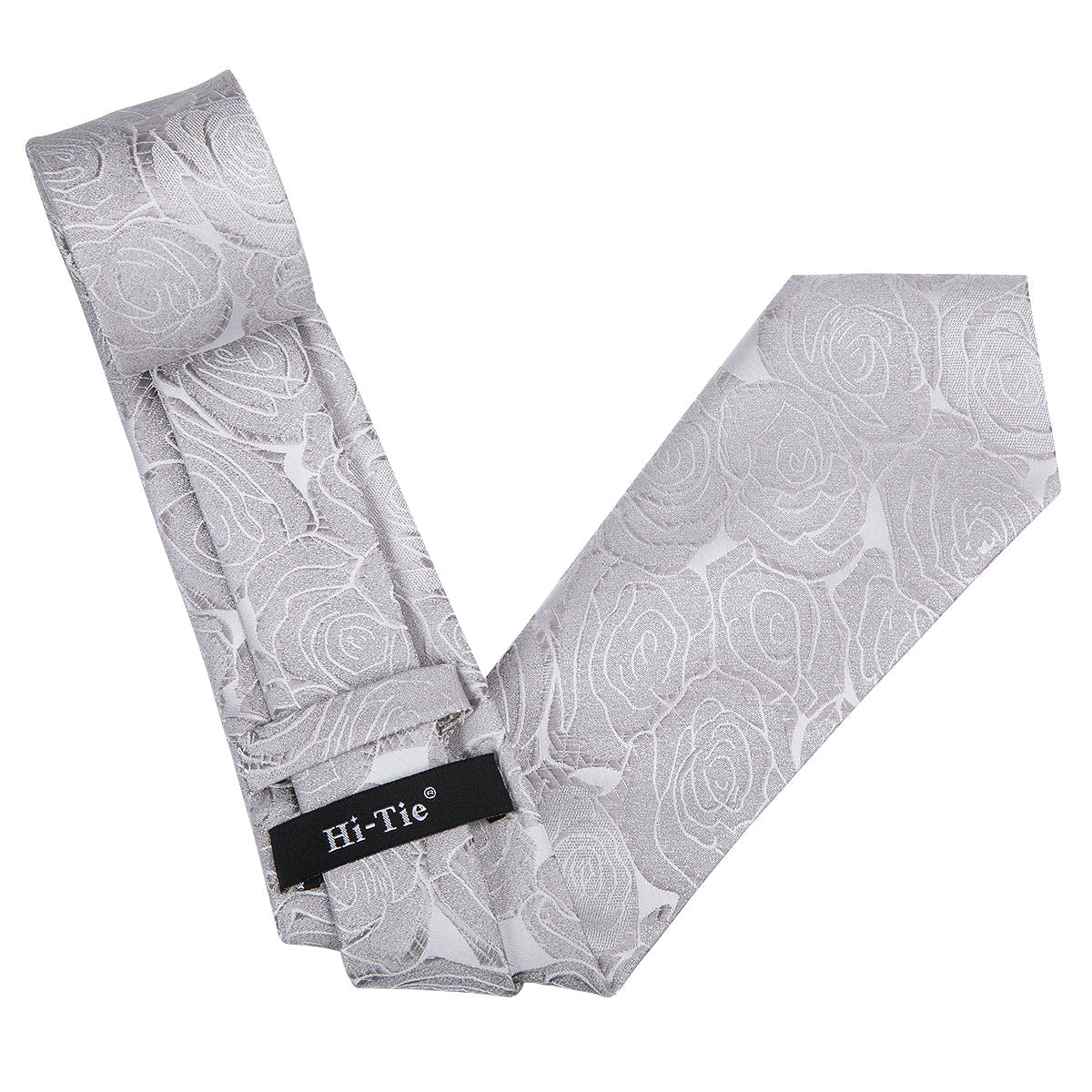 White Grey Floral Tie Pocket Square Cufflinks SetWhite Grey Floral Tie Pocket Square Cufflinks Set