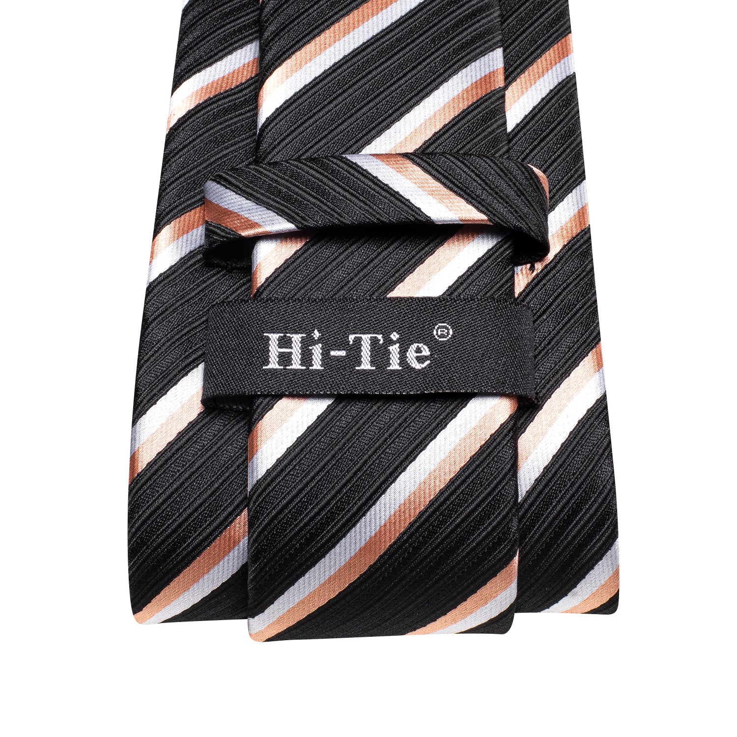 Hi-Tie Black Strip White Dots 67 " Necktie Pocket Square Cufflinks SetHi-Tie Black Strip White Dots 67 " Necktie Pocket Square Cufflinks Set