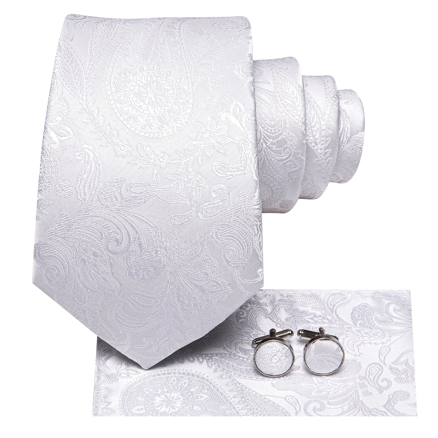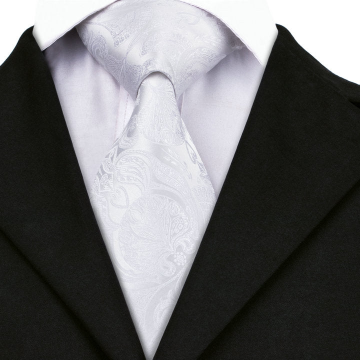 Pure White Paisley Men's Necktie Pocket Square Cufflinks SetPure White Paisley Men's Necktie Pocket Square Cufflinks Set