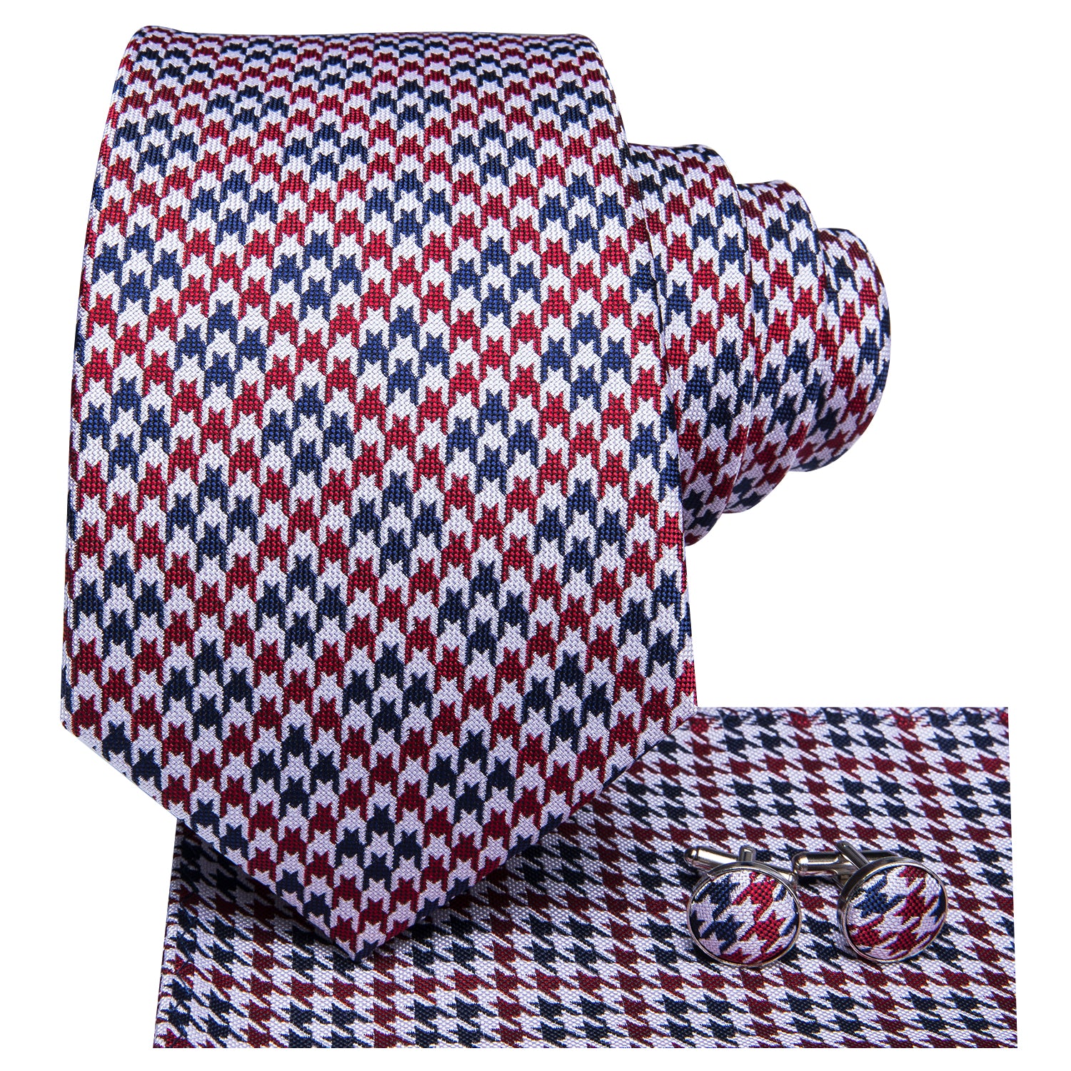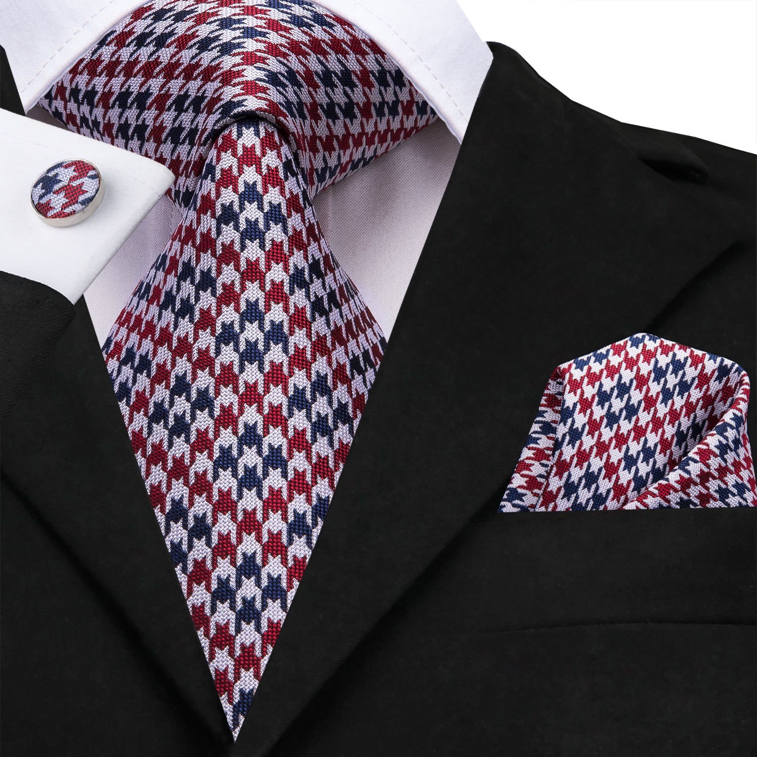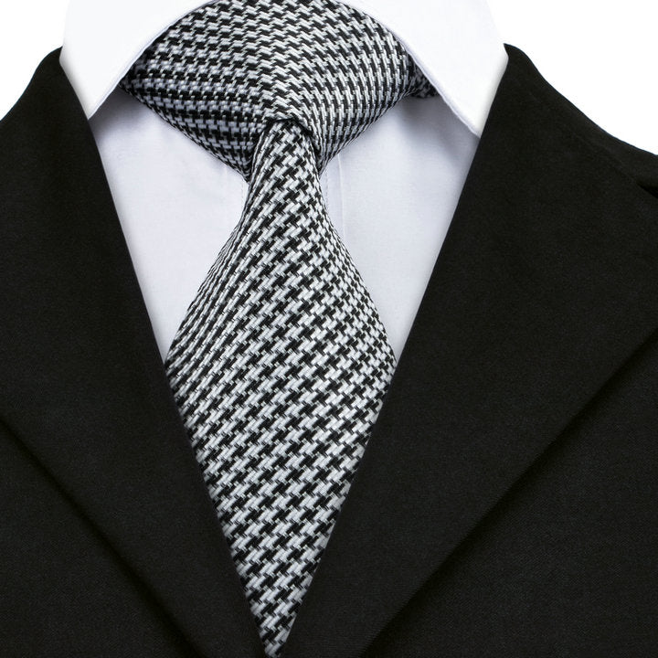 Classic Houndstooth White Black Plaid Tie Hanky Cufflinks SetClassic Houndstooth White Black Plaid Tie Hanky Cufflinks Set