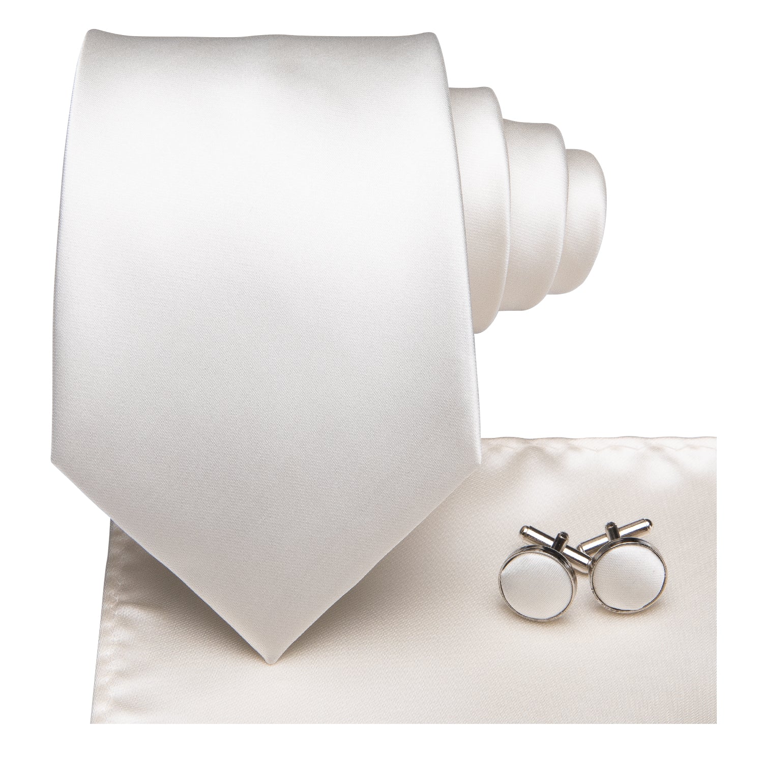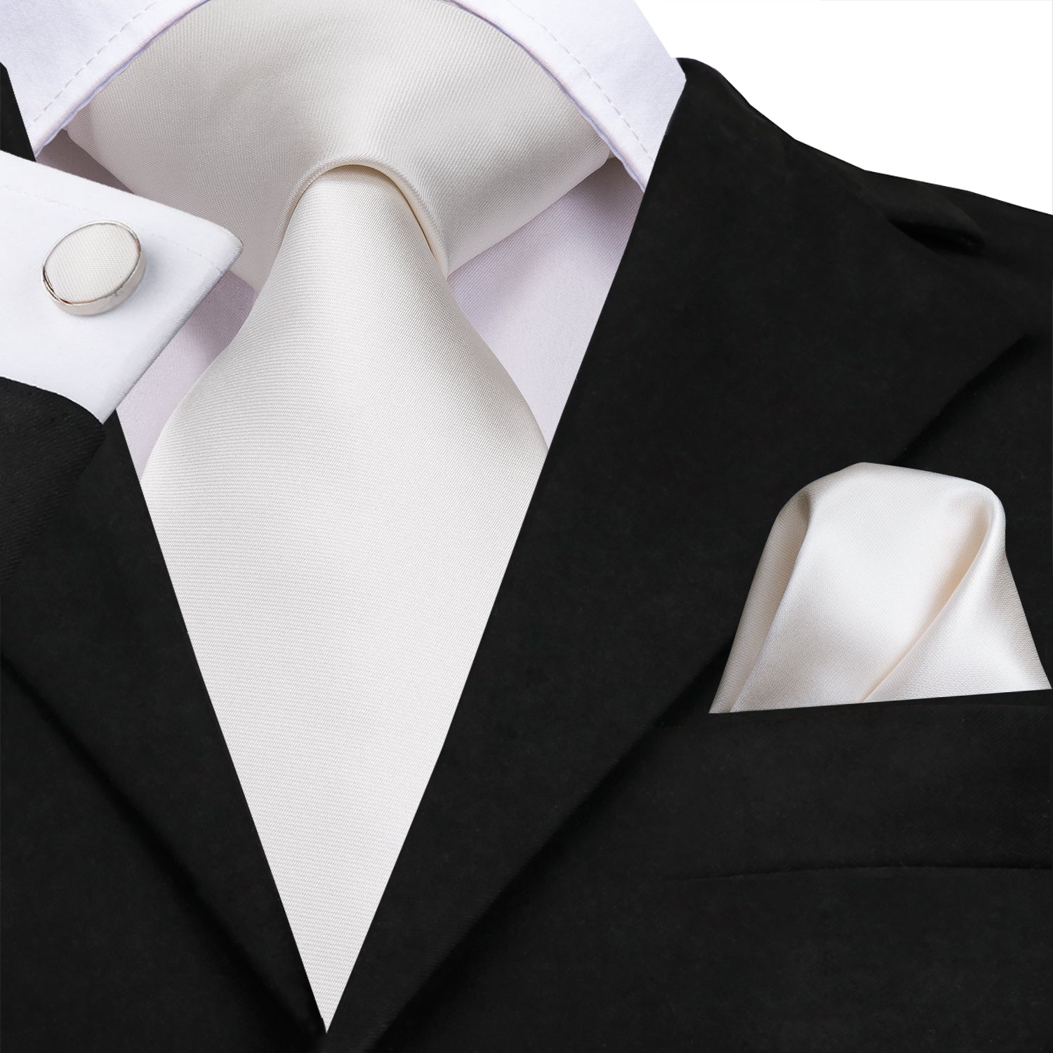 Sold outWhite Necktie Solid Milky White Tie Pocket Square Cufflinks SetWhite Necktie Solid Milky White Tie Pocket Square Cufflinks Set