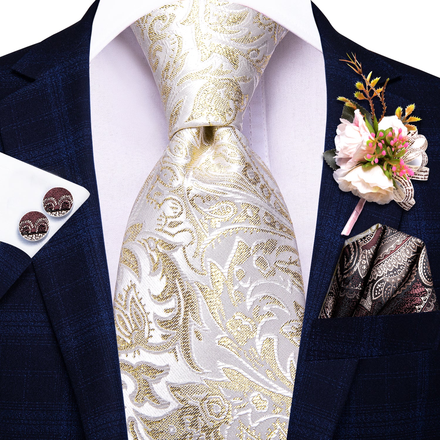 Sold out Pure White Paisley Silk Men's Tie Pocket Square Cufflinks Set Pure White Paisley Silk Men's Tie Pocket Square Cufflinks Set