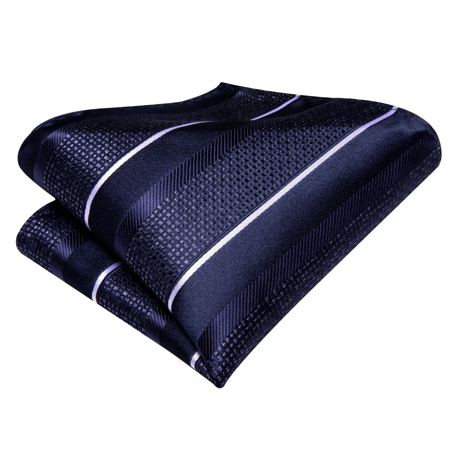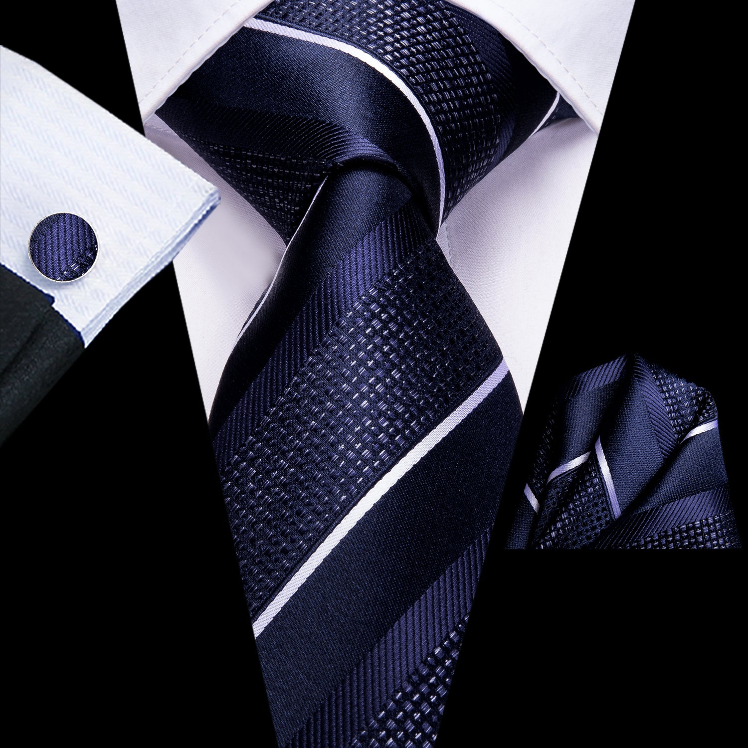 Deep Blue Tie White Striped Necktie Pocket Square Cufflinks SetDeep Blue Tie White Striped Necktie Pocket Square Cufflinks Set
