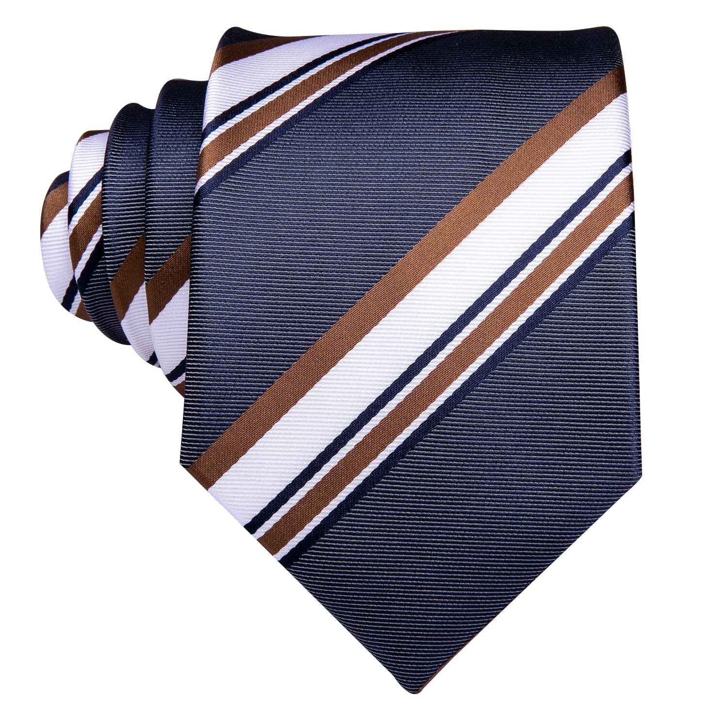 Navy Blue Brown White Striped Tie Pocket Square Cufflinks SetNavy Blue Brown White Striped Tie Pocket Square Cufflinks Set