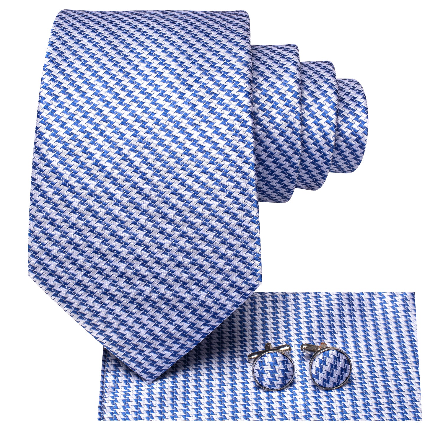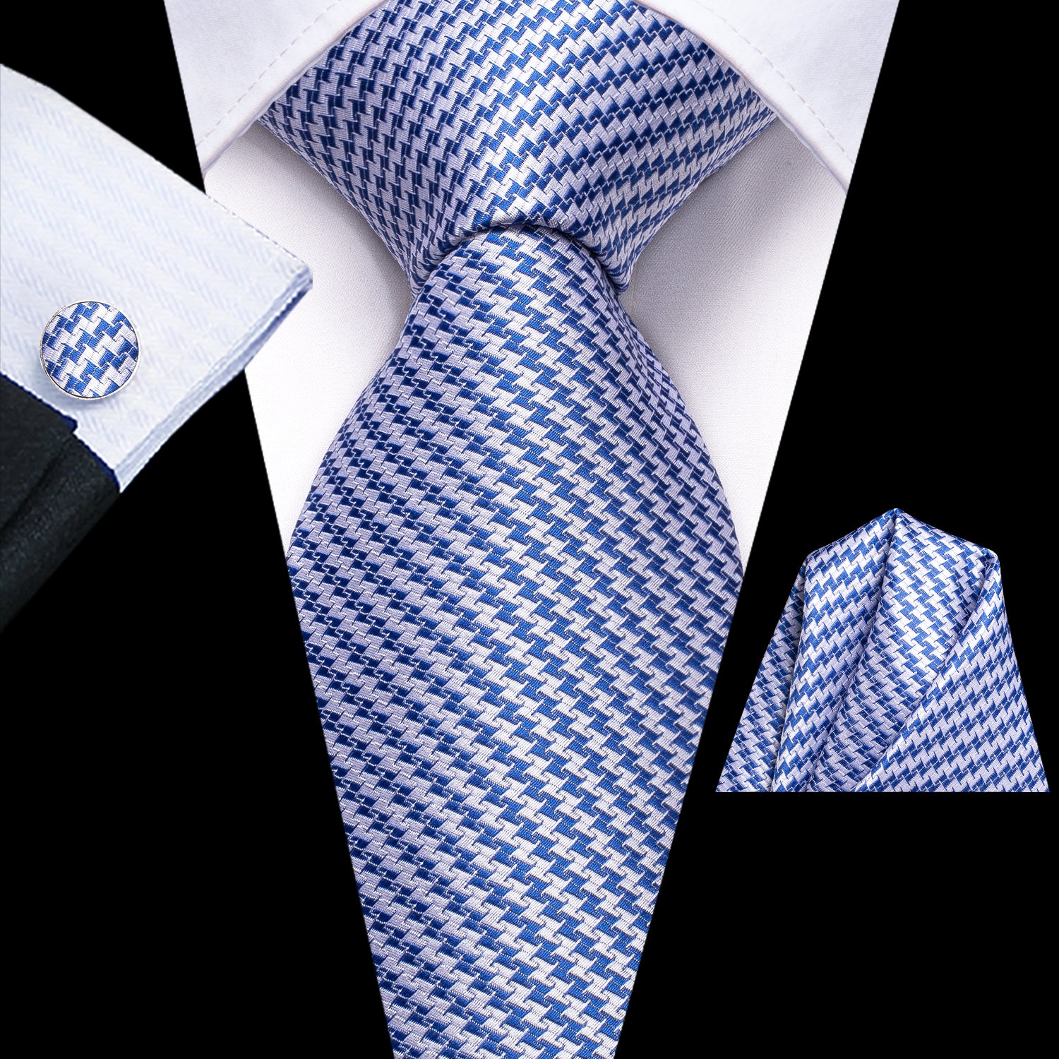 Sold outBlue White Sawtooth Wedding Necktie Pocket Square Cufflinks SetBlue White Sawtooth Wedding Necktie Pocket Square Cufflinks Set