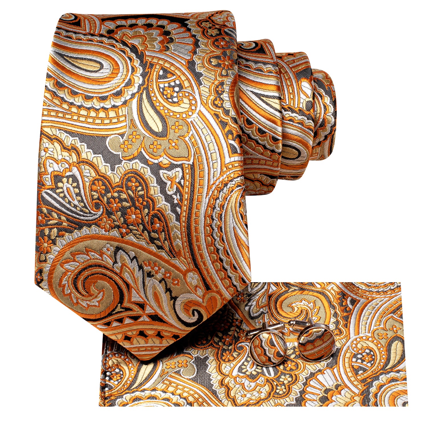 Orange White Black Paisley Silk Tie Pocket Square Cufflinks Set Orange White Black Paisley Silk Tie Pocket Square Cufflinks Set