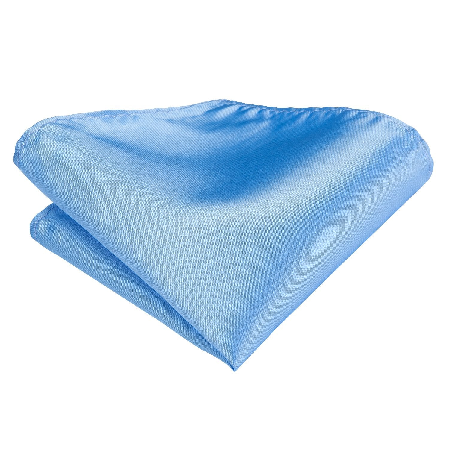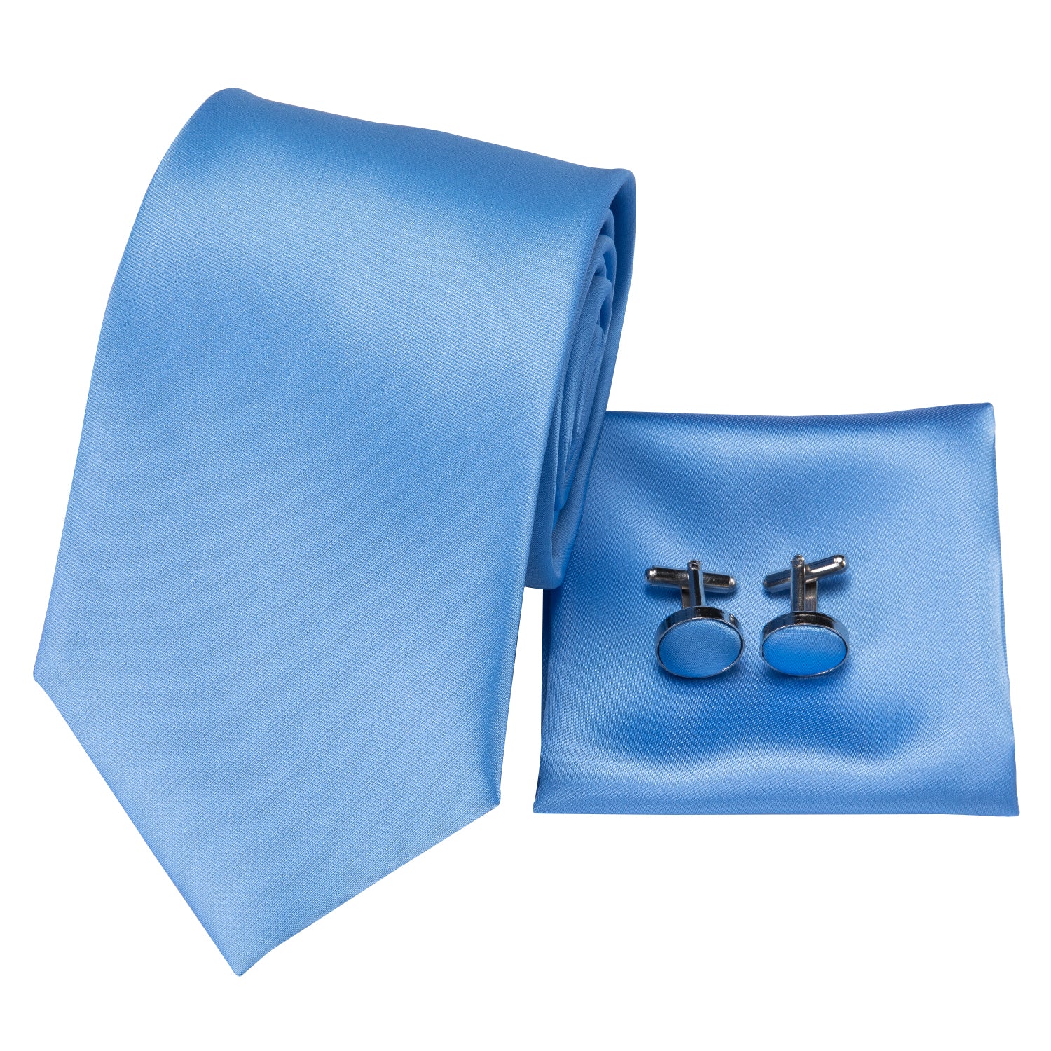 Hi-Tie Light Baby Blue Plain Silk Necktie Pocket Square Cufflinks Set