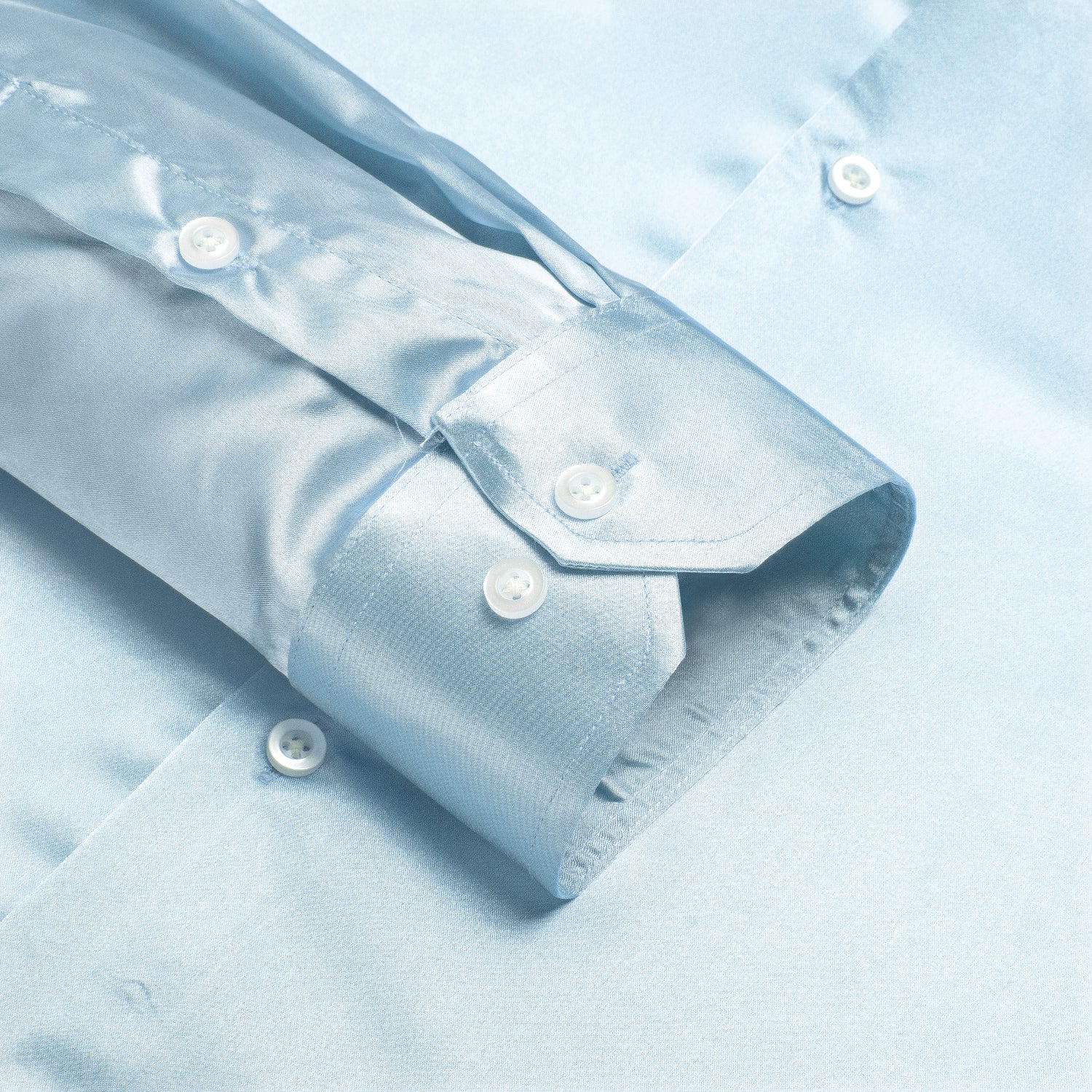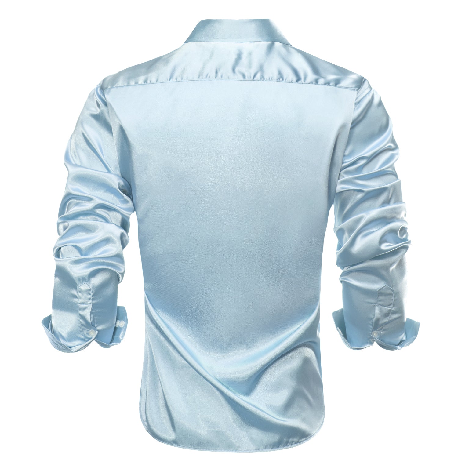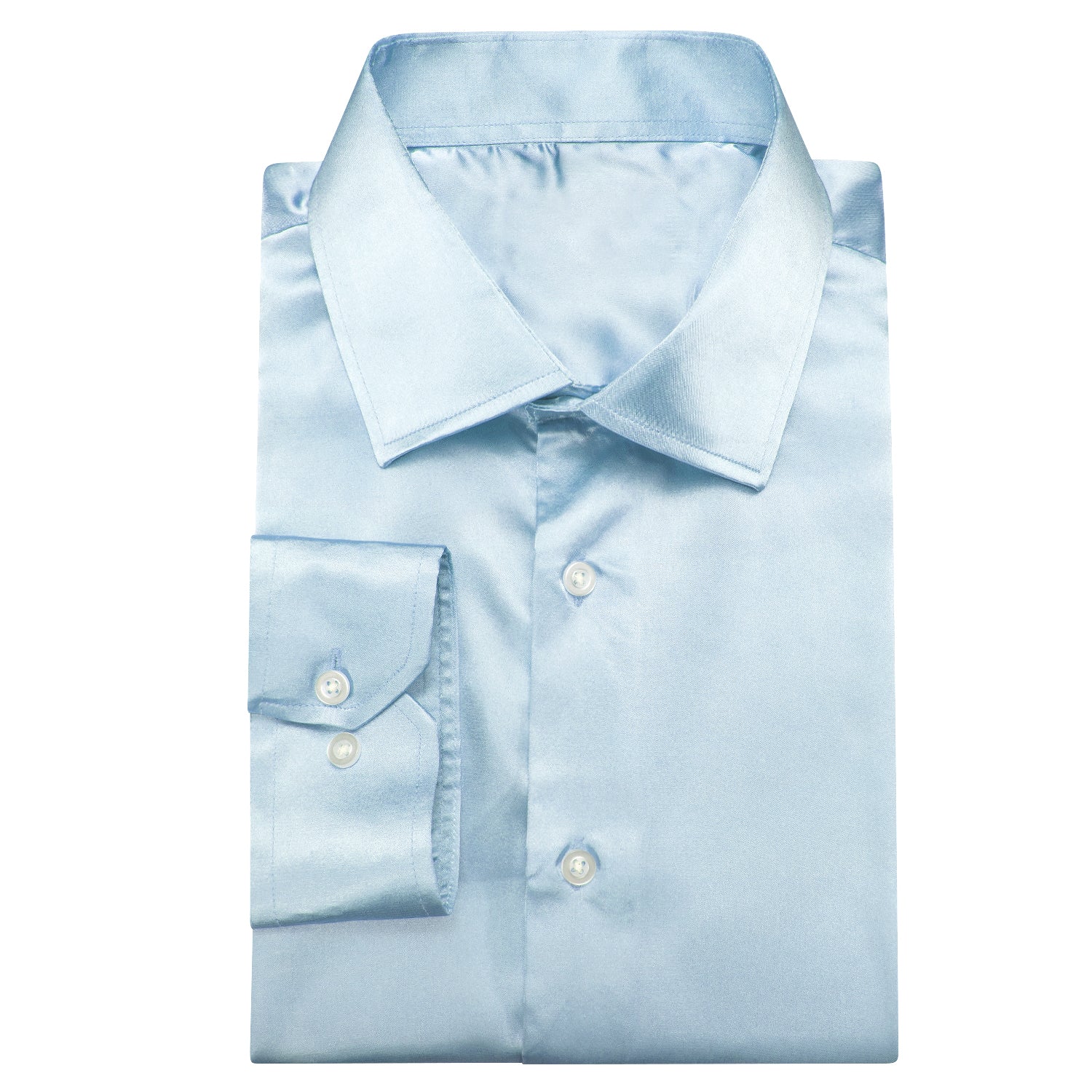 Hi-Tie Sky Blue Shirt Baby Blue Silk Satin Men Long Sleeve Dress Shirt