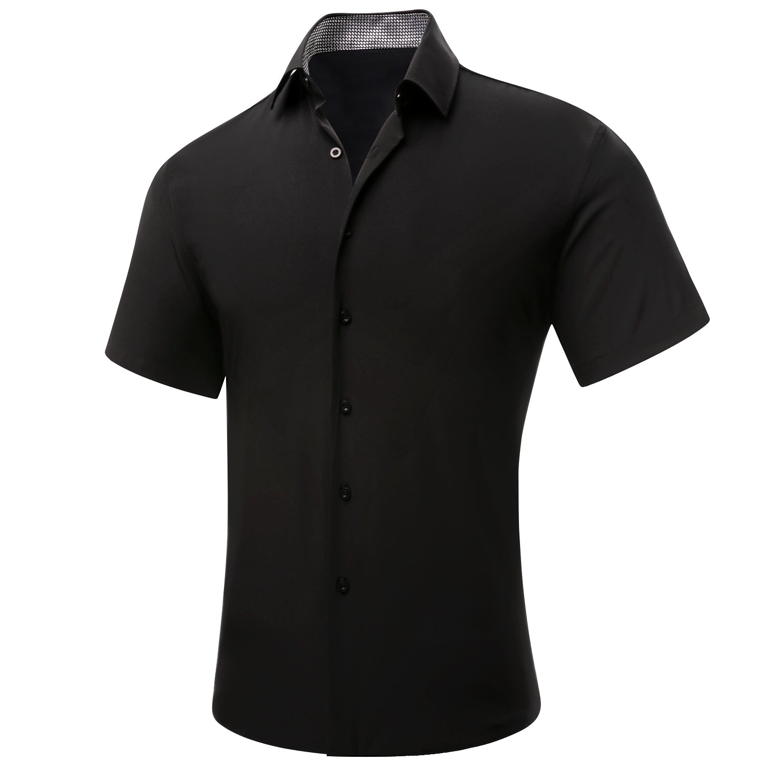 Hi-Tie Black Solid with Grey Collar Silk Men's Short Sleeve Shirt