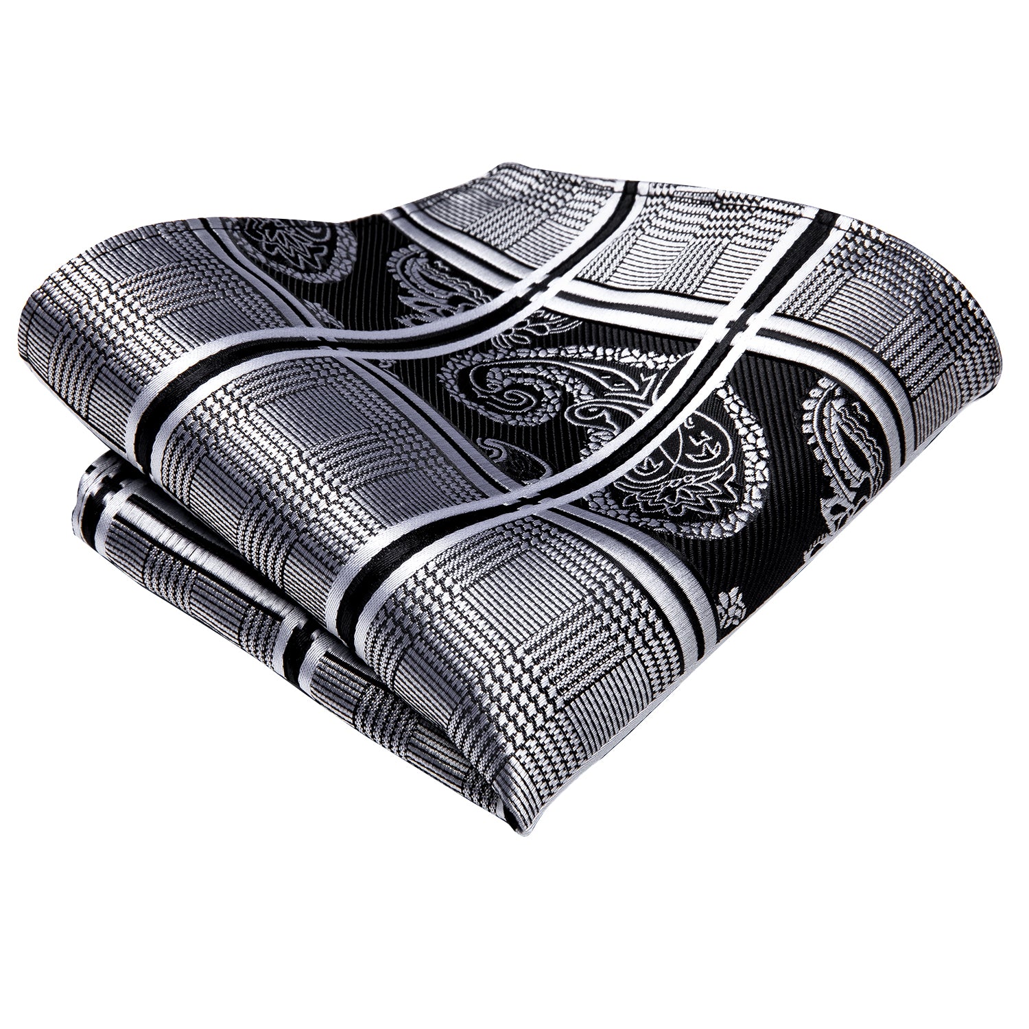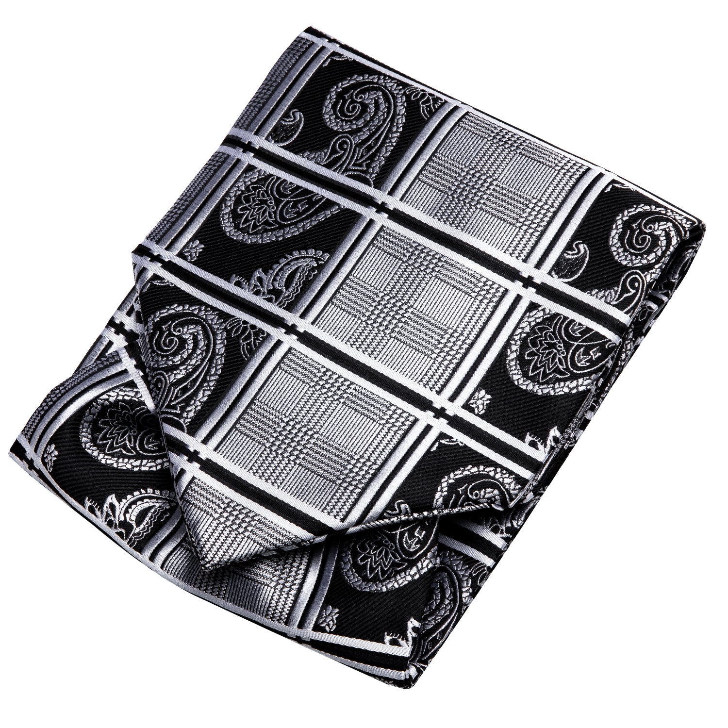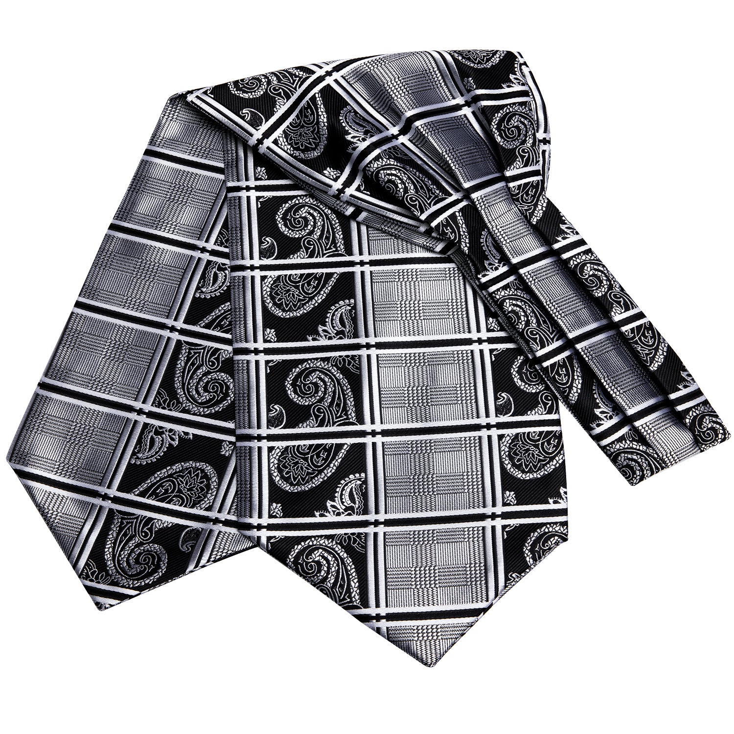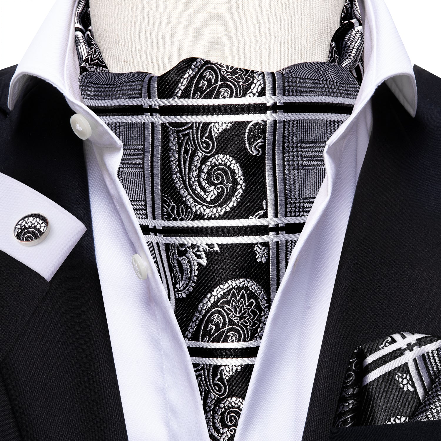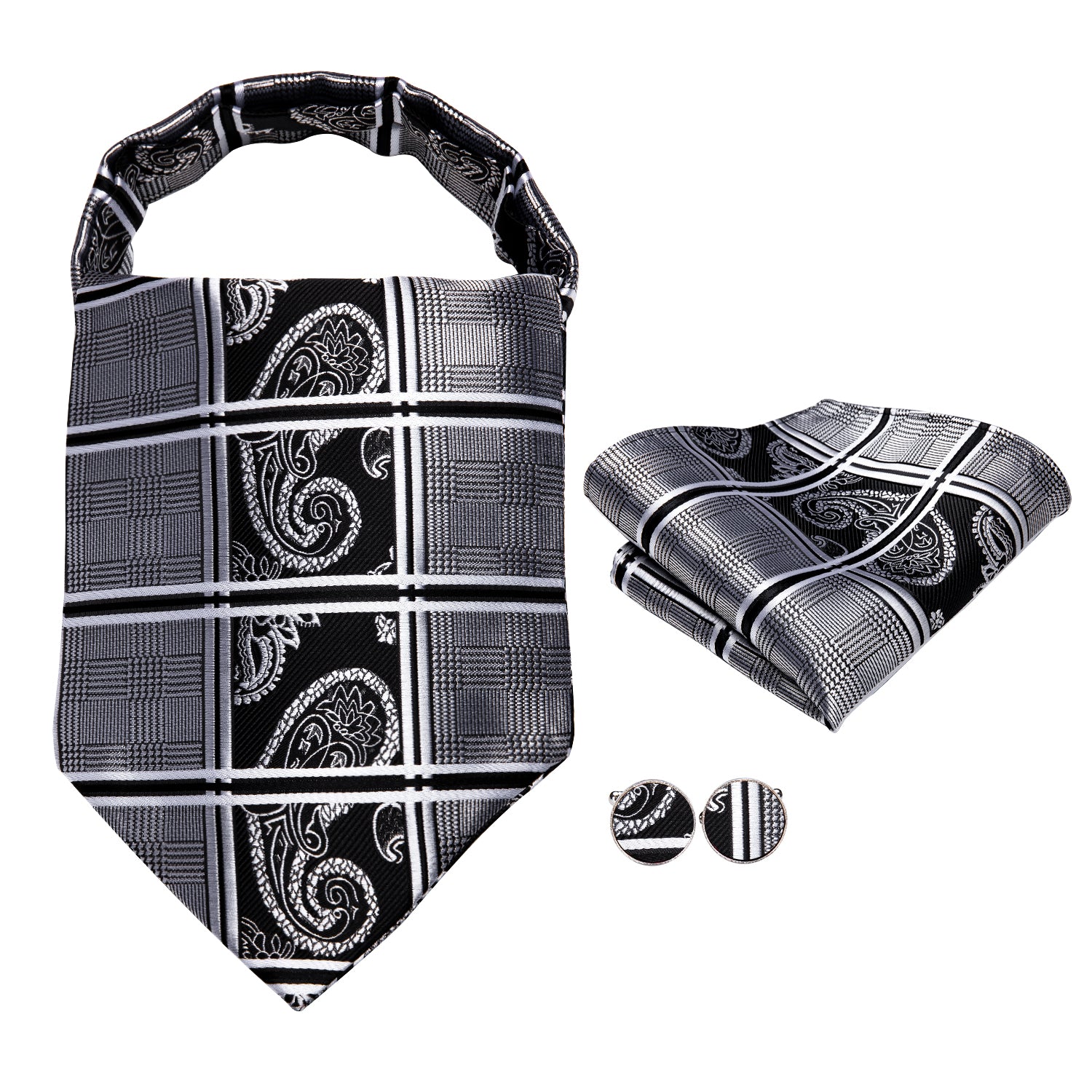 Black White Paisley Plaid Ascot Pocket Square Cufflinks Set