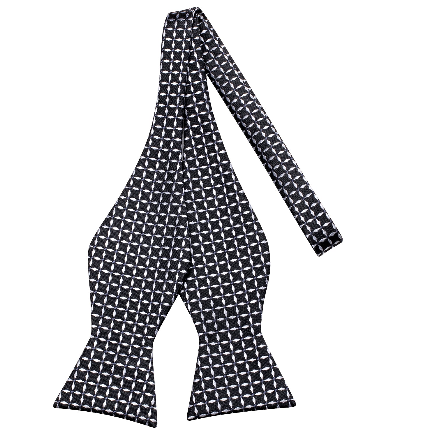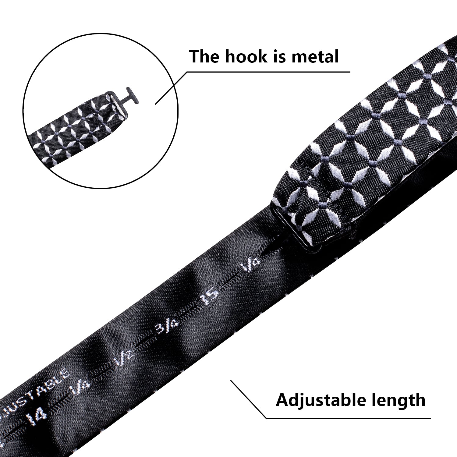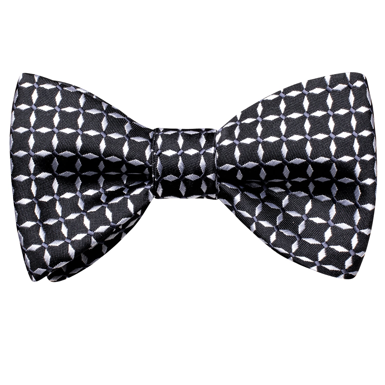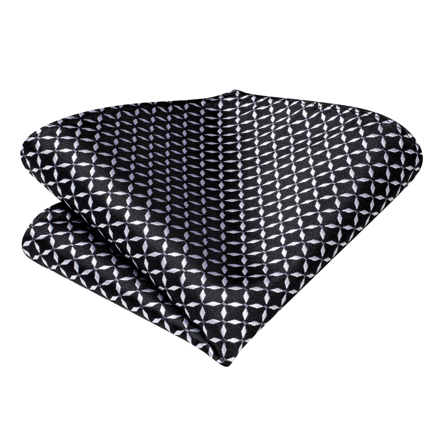 Hi-Tie Black White Plaid Novelty Self-tied Bow Tie Hanky Cufflinks Set