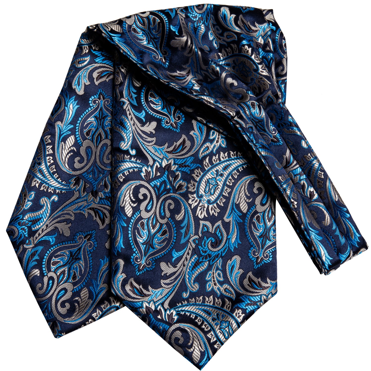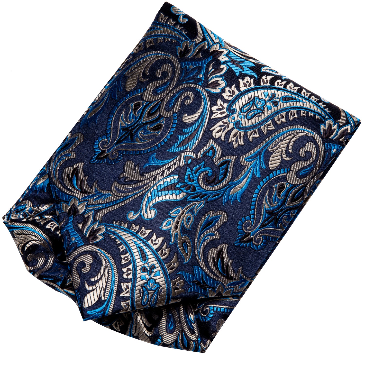 Blue Brown Paisley Ascot Pocket Square Cufflinks Set
