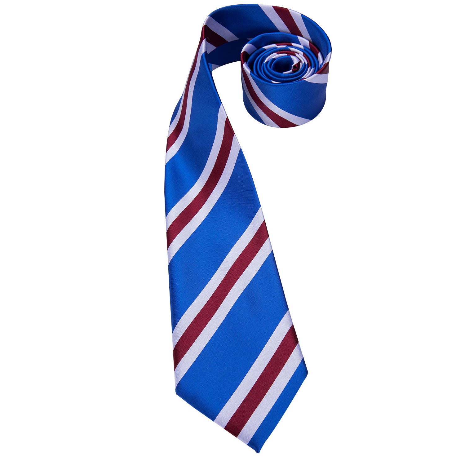 Hi-Tie Blue Necktie Red White Stripes Tie Pocket Square Cufflinks Set