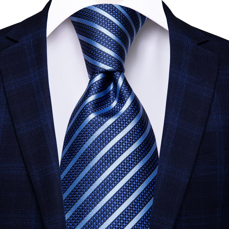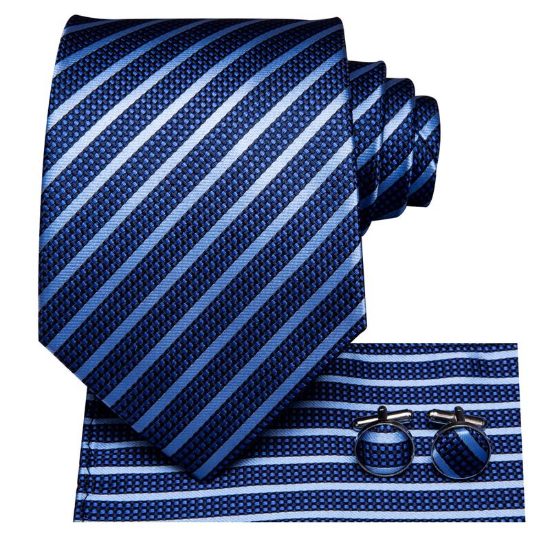 Hi-Tie Blue Striped Necktie Pocket Square Cufflinks Gift Box Set