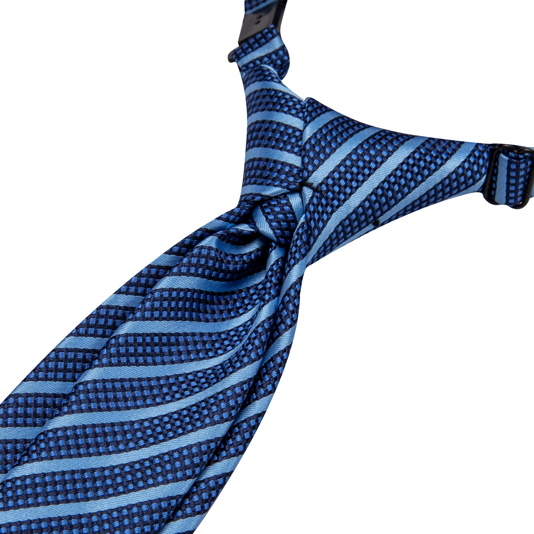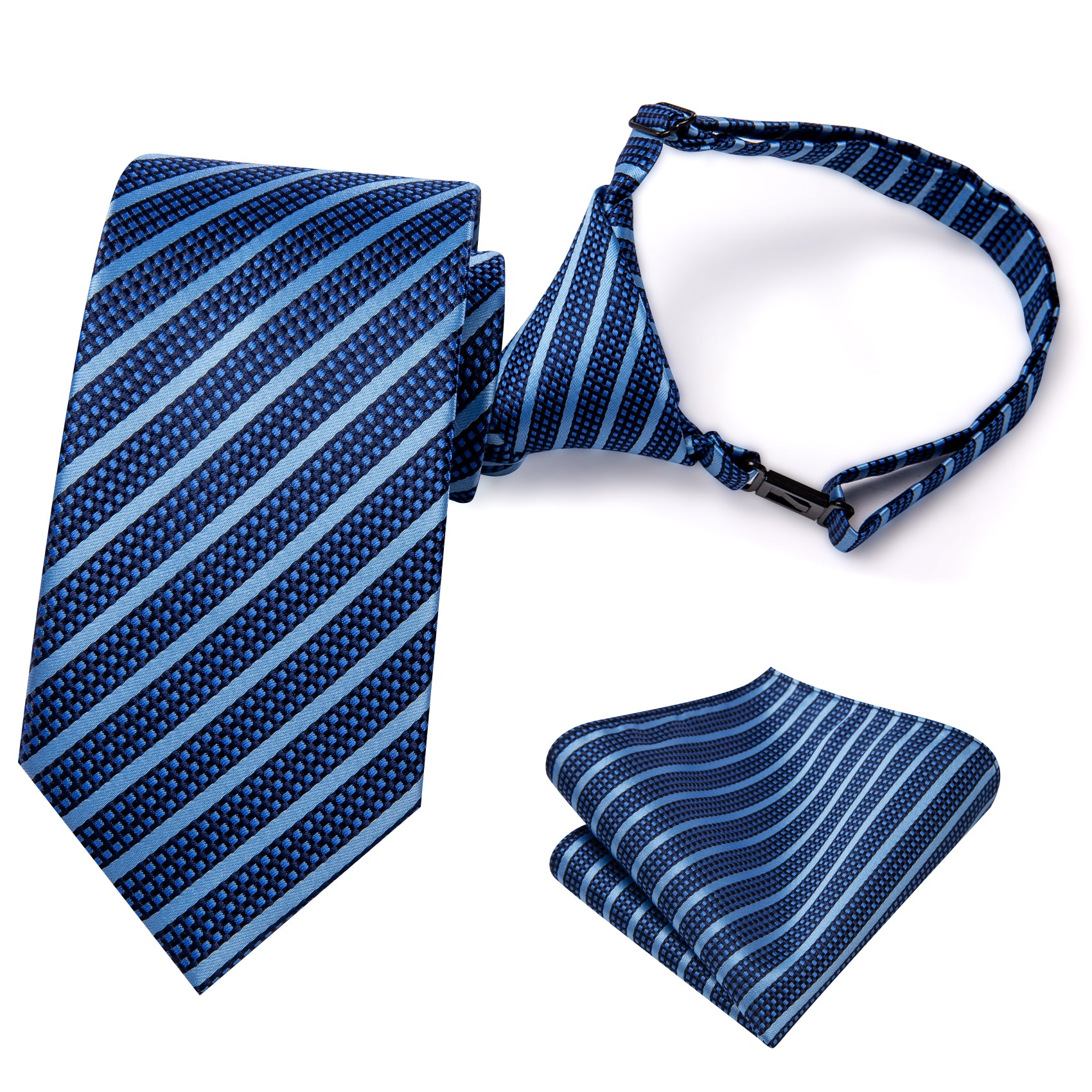 Hi-Tie Blue Striped Pre-tied Adjustable Tie Pocket Square