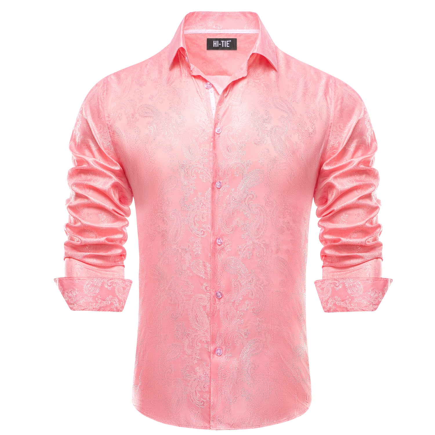 Blush Pink Men Long Sleeve Paisley Shirt