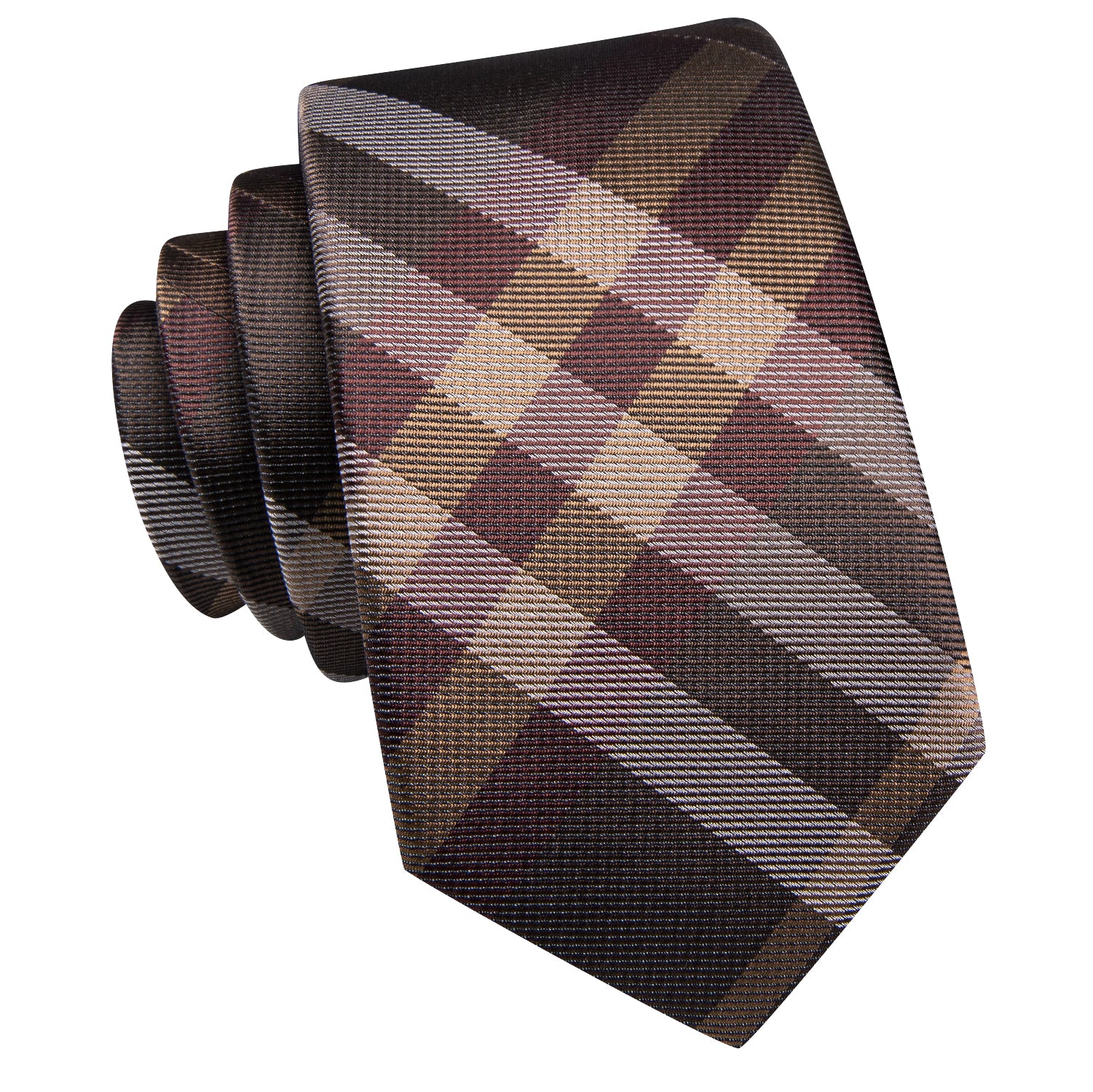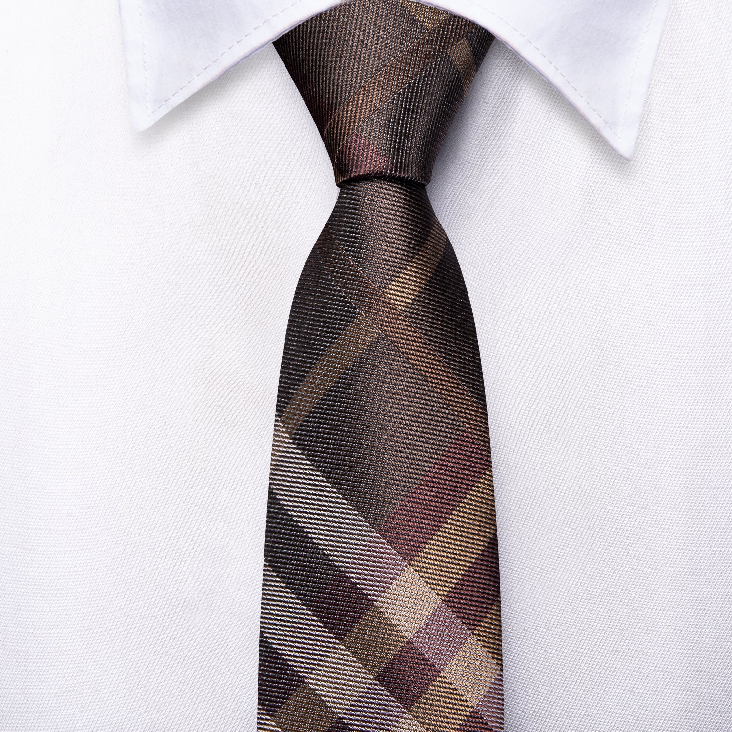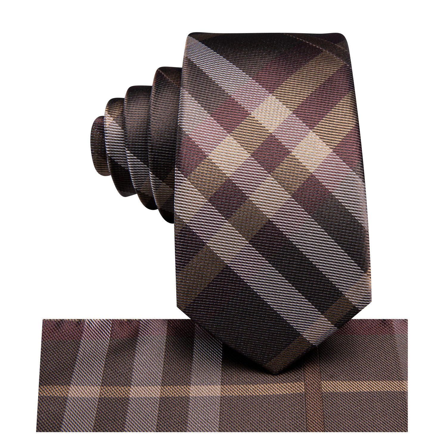 Hi-Tie Brown Beige Boys Necktie Plaid Children's Tie Pocket Square