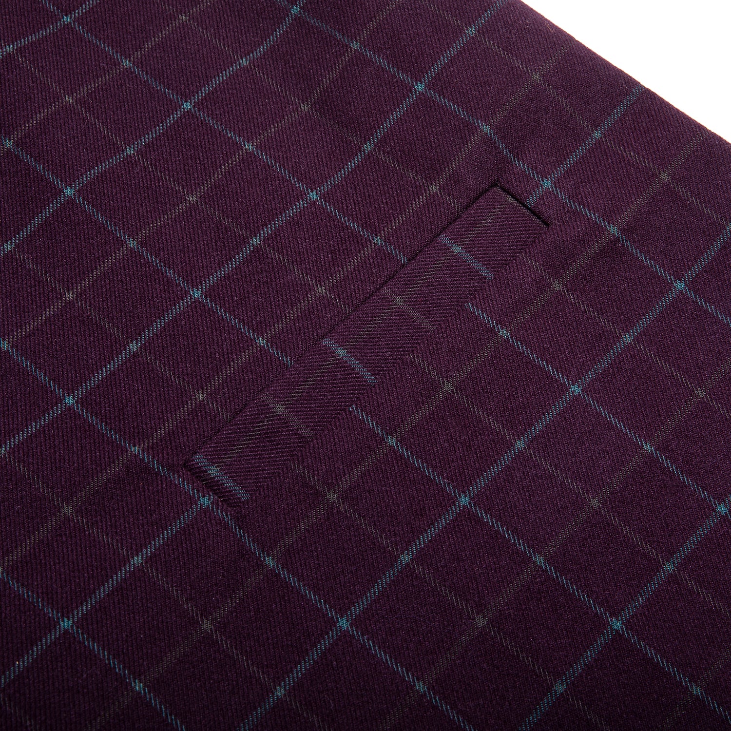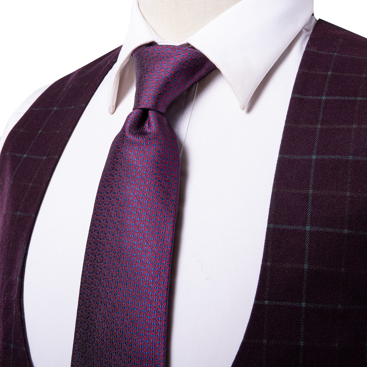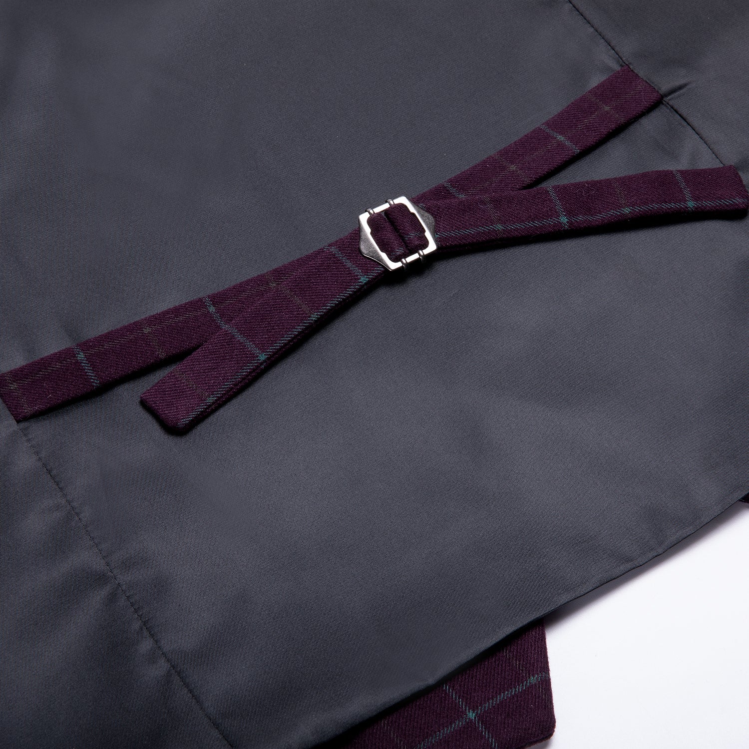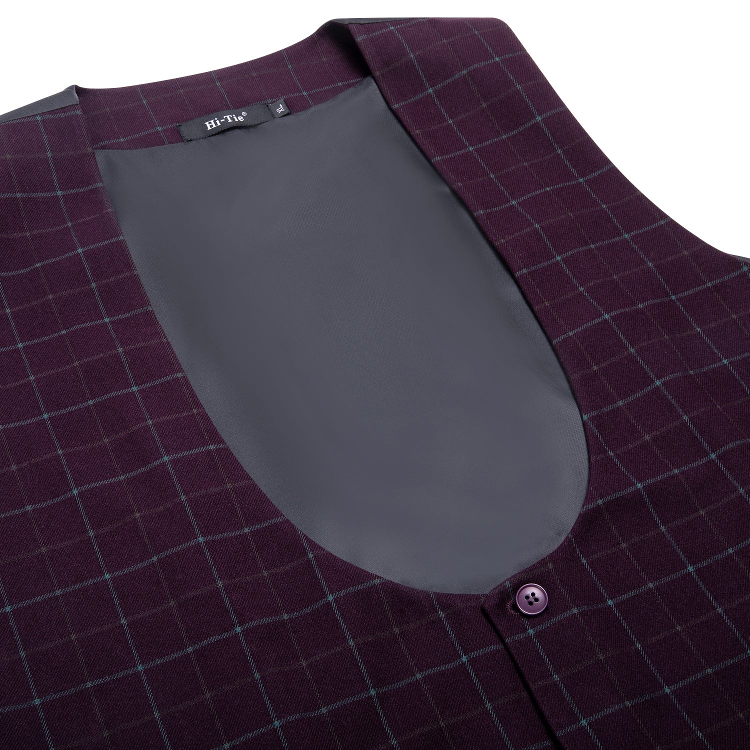 Burgundy Plaid Men's Vest Hanky Cufflinks Tie Set Waistcoat Suit Set