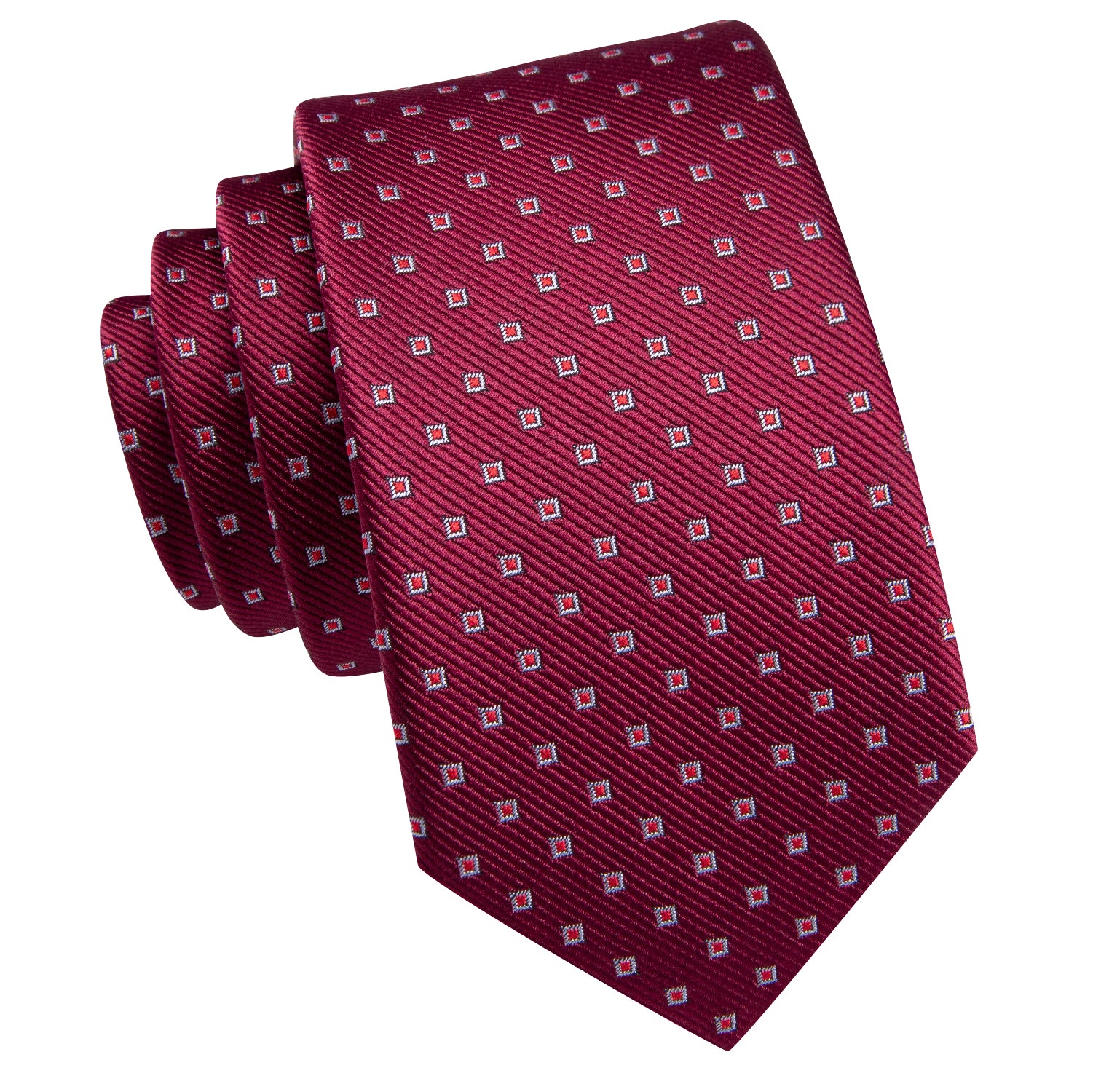 Hi-Tie Burgundy Red Necktie Jacquard Dots Children Tie Pocket Square