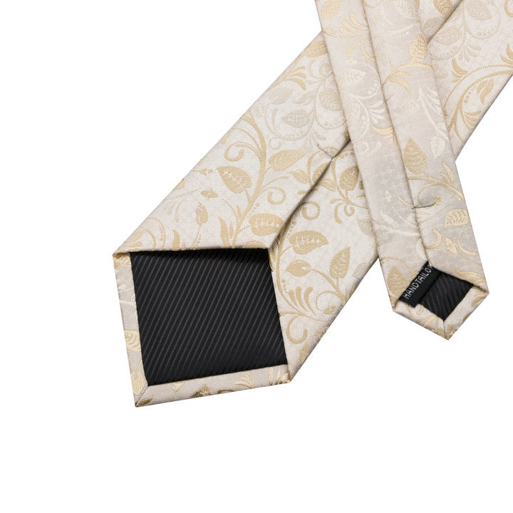 Hi-Tie Champagne Golden Necktie Floral Tie Pocket Square Cufflinks Set