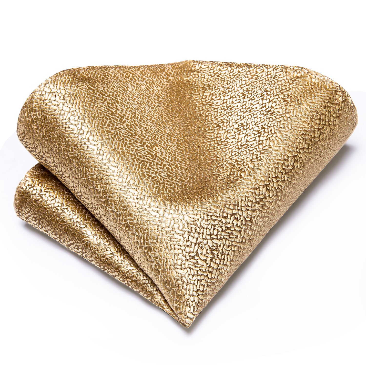 Champagne Golden Solid Men's Tie Pocket Square Cufflinks Set with Brooch