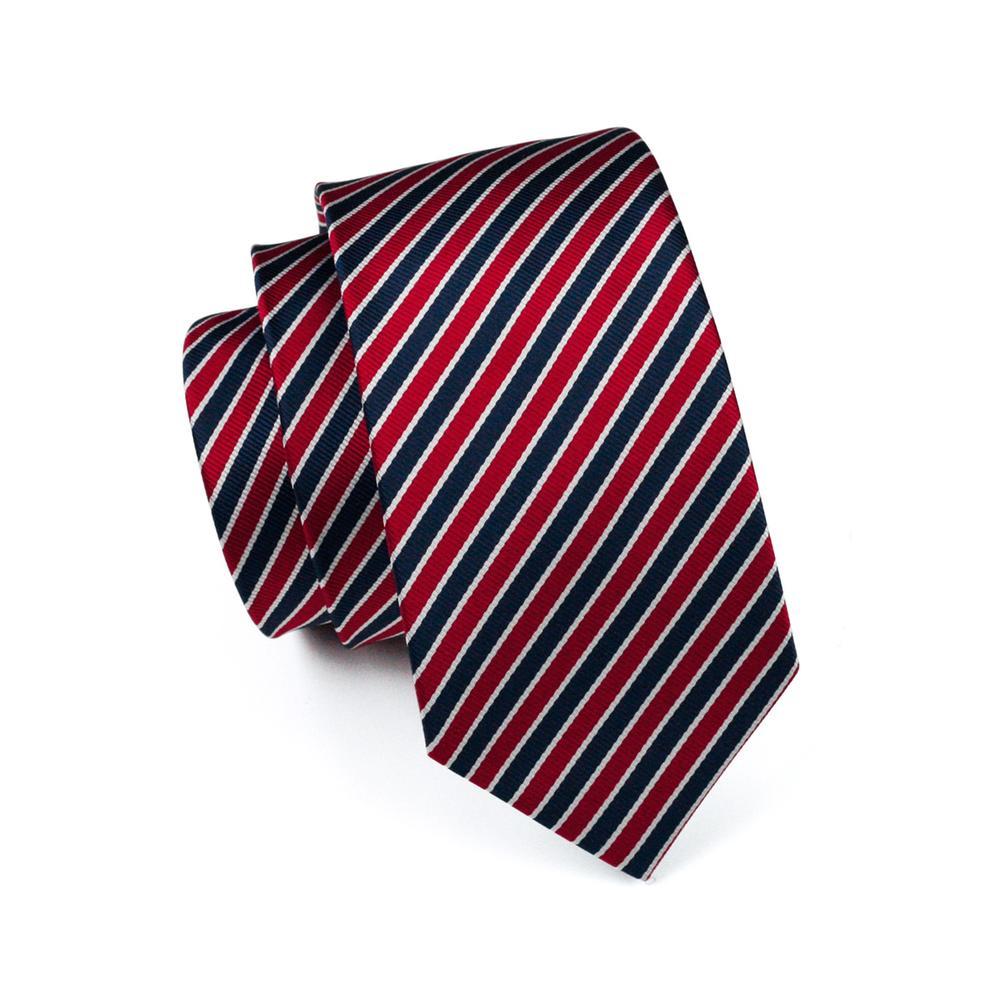 Classic Blue Red Striped Silk Men's Tie Pocket Square Cufflinks Gift Box Set