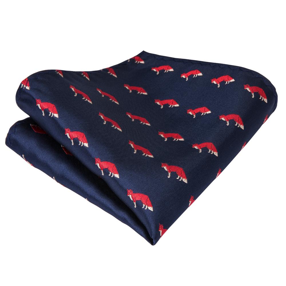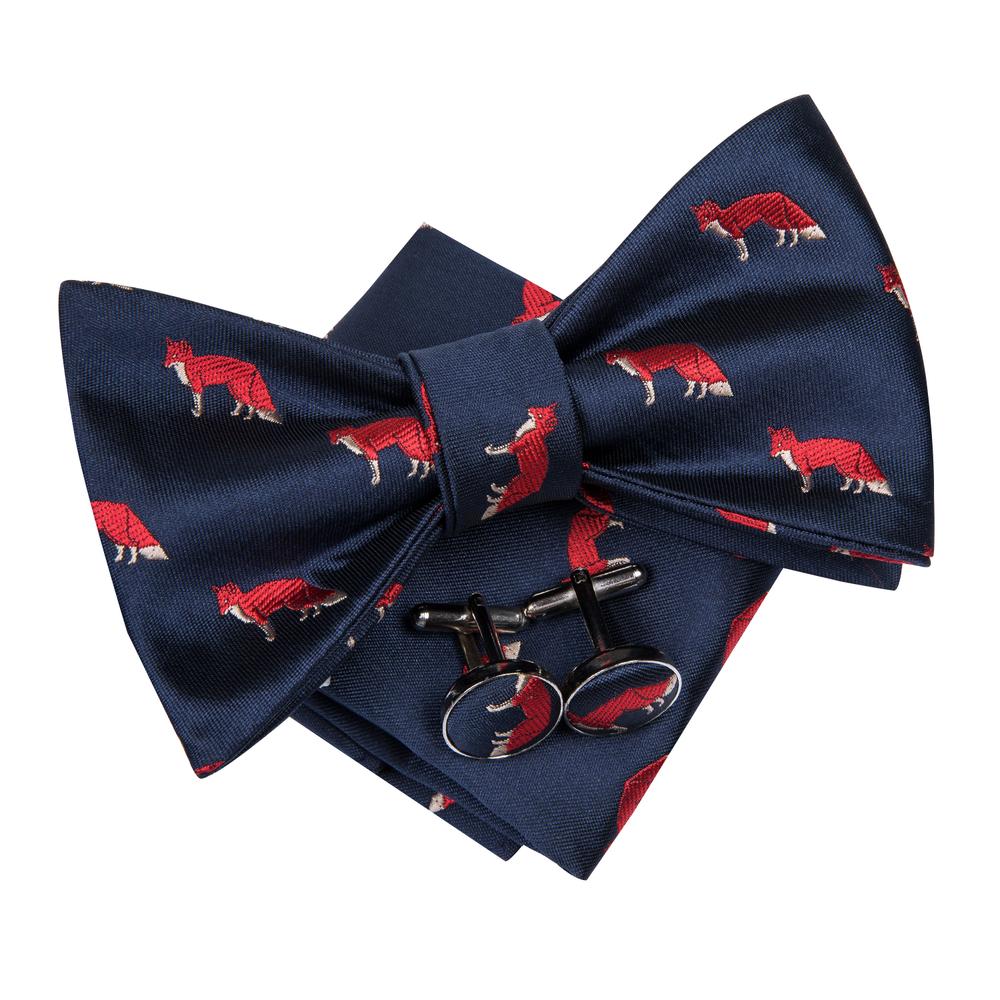 Deep Blue Fox Novelty Self-tied Bow Tie Pocket Square Cufflinks Set