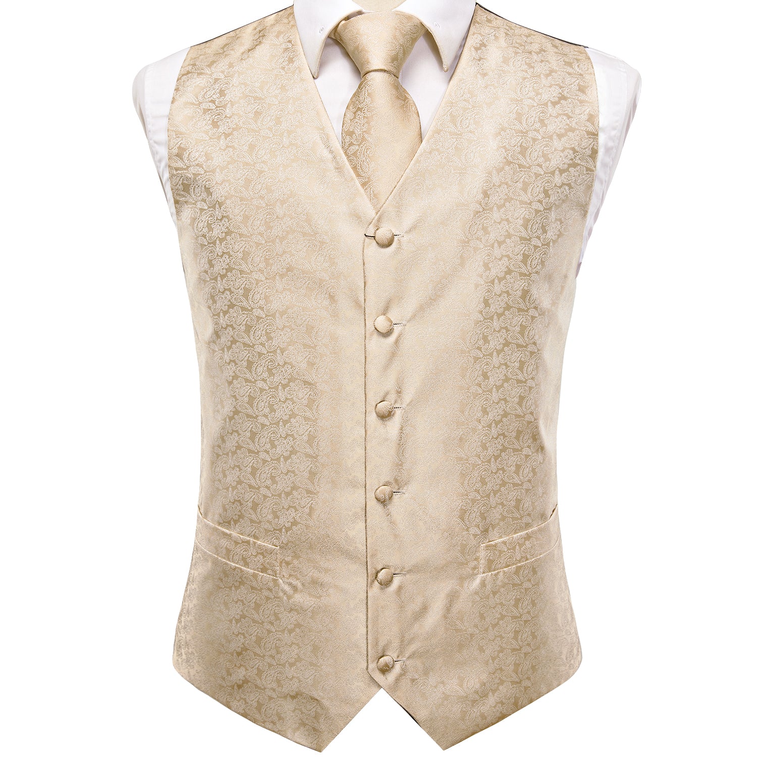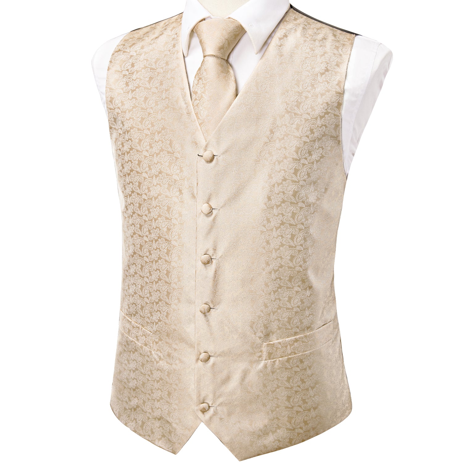 Champagne Paisley Silk Men's Vest Hanky Cufflinks Tie Set Waistcoat Suit Set