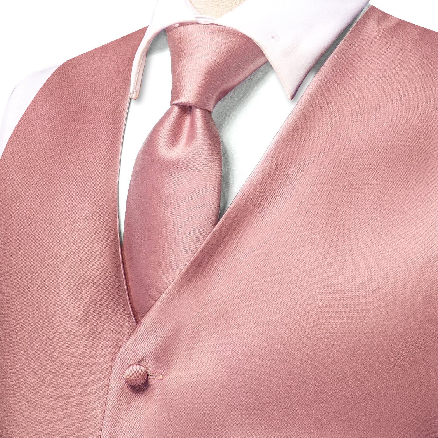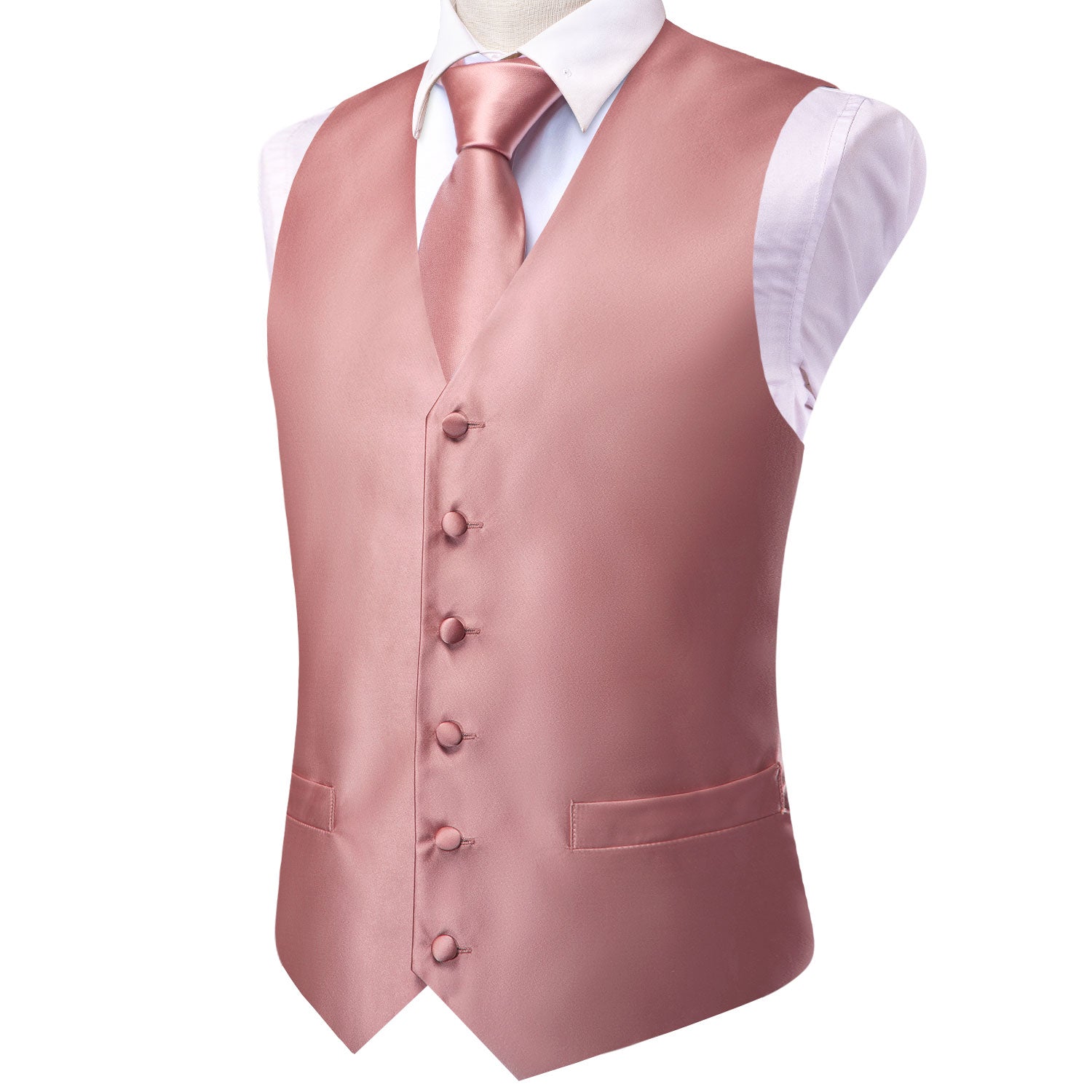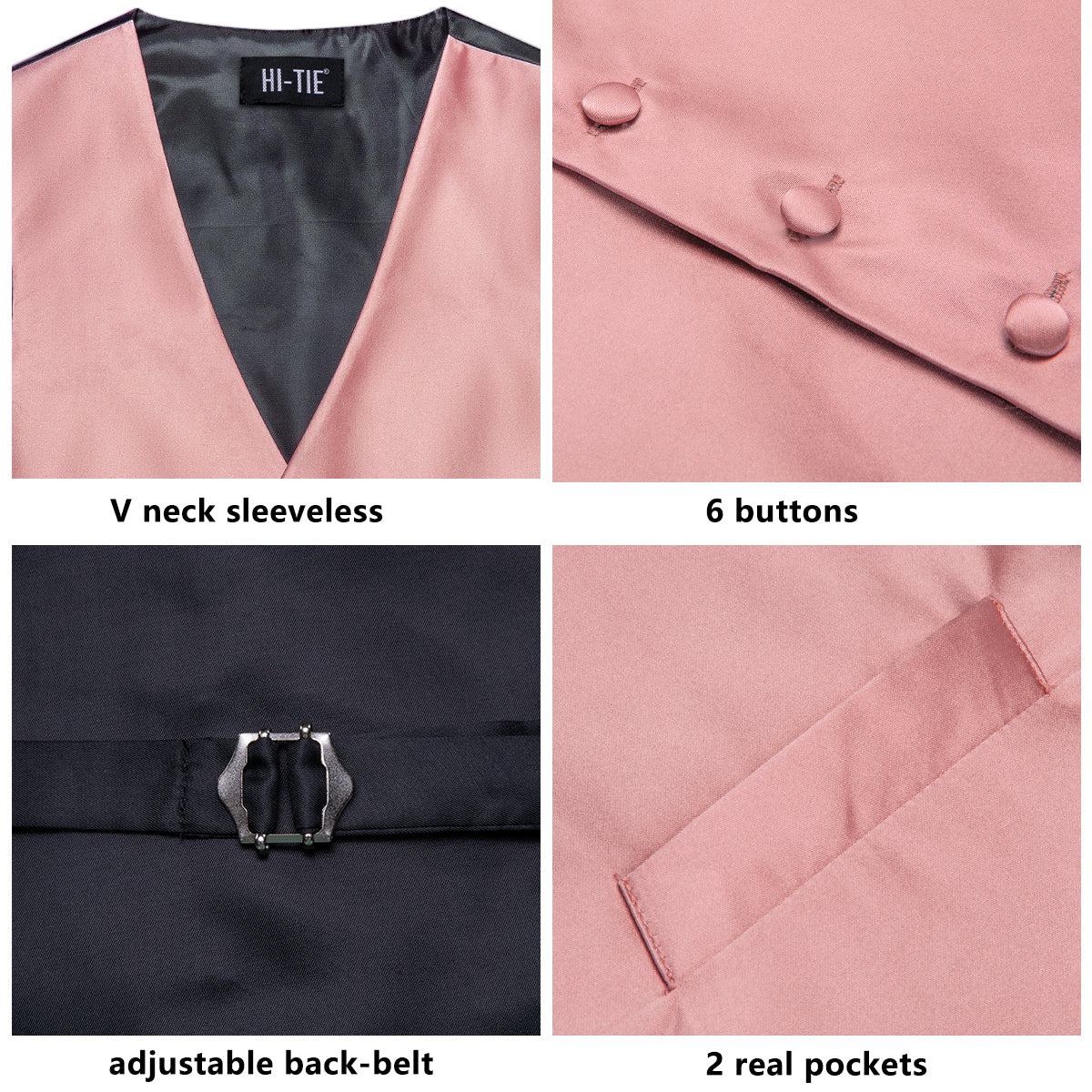 Hi-Tie Dark Coral Pink Paisley Men Vest Handkerchief Cufflinks Tie Set