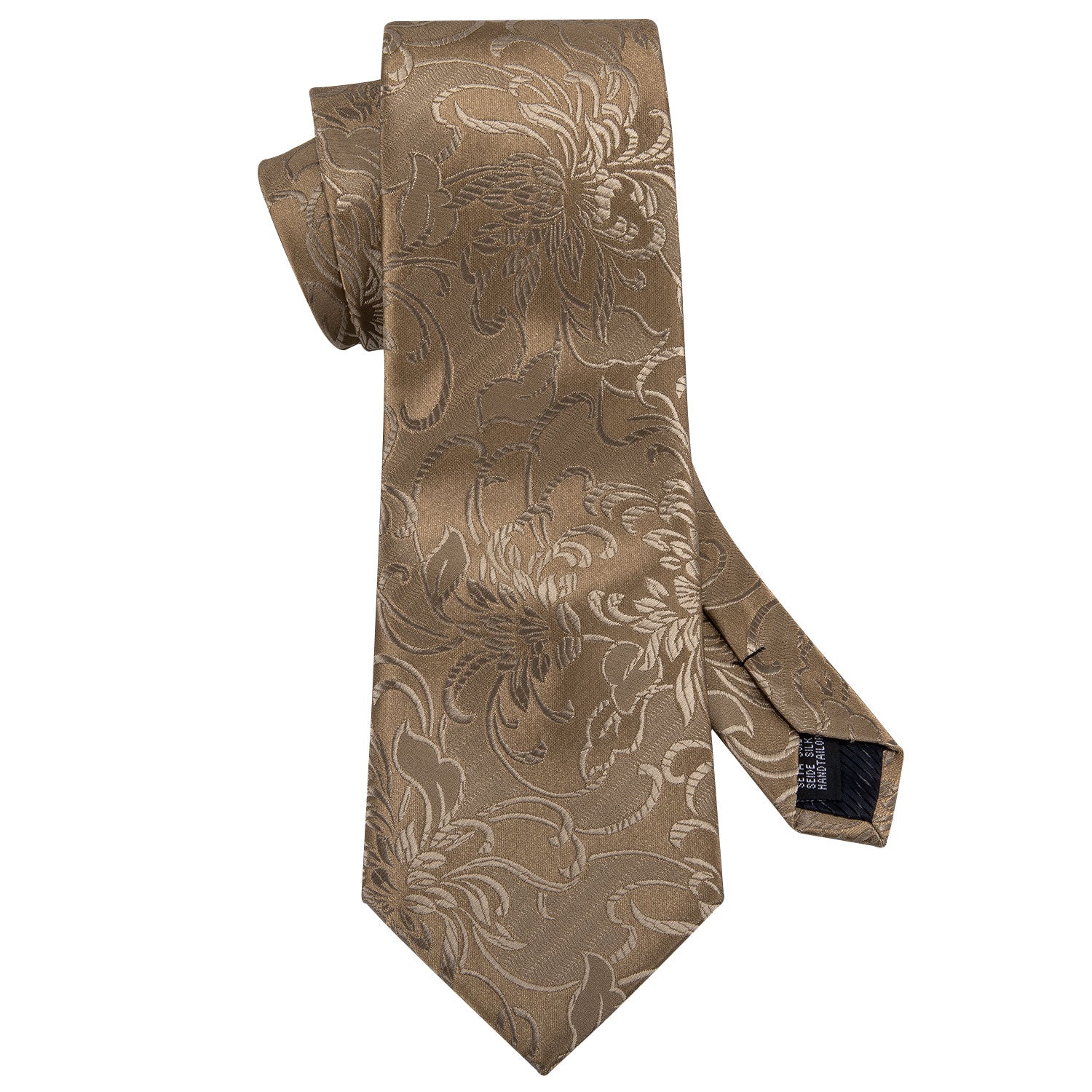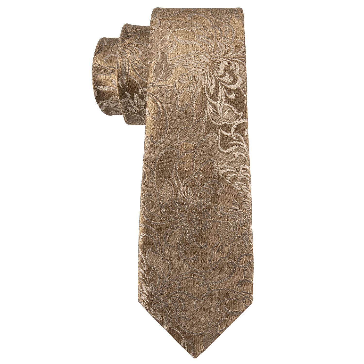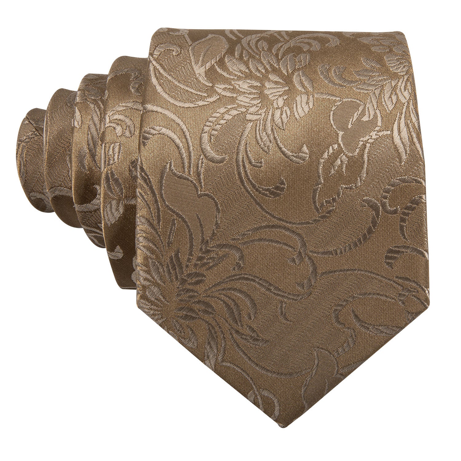 Hi-Tie Champagne Gold Floral Men's Necktie Pocket Square Cufflinks Set