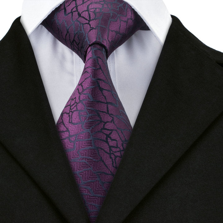 Hi-Tie Dark Purple Necktie Black Plaid Tie Pocket Square Cufflinks Set