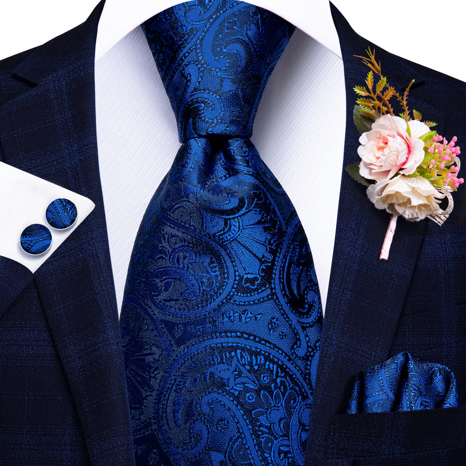 Fanstastic Blue Paisley Tie Handkerchief Cufflinks Set with Wedding Brooch