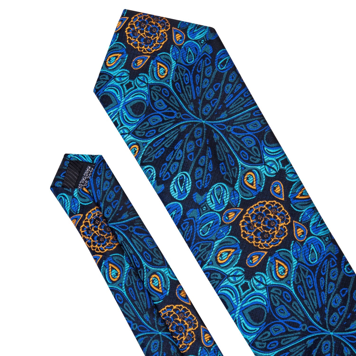 Fantastic Blue Floral Tie Handkerchief Cufflinks Set with Wedding Brooch