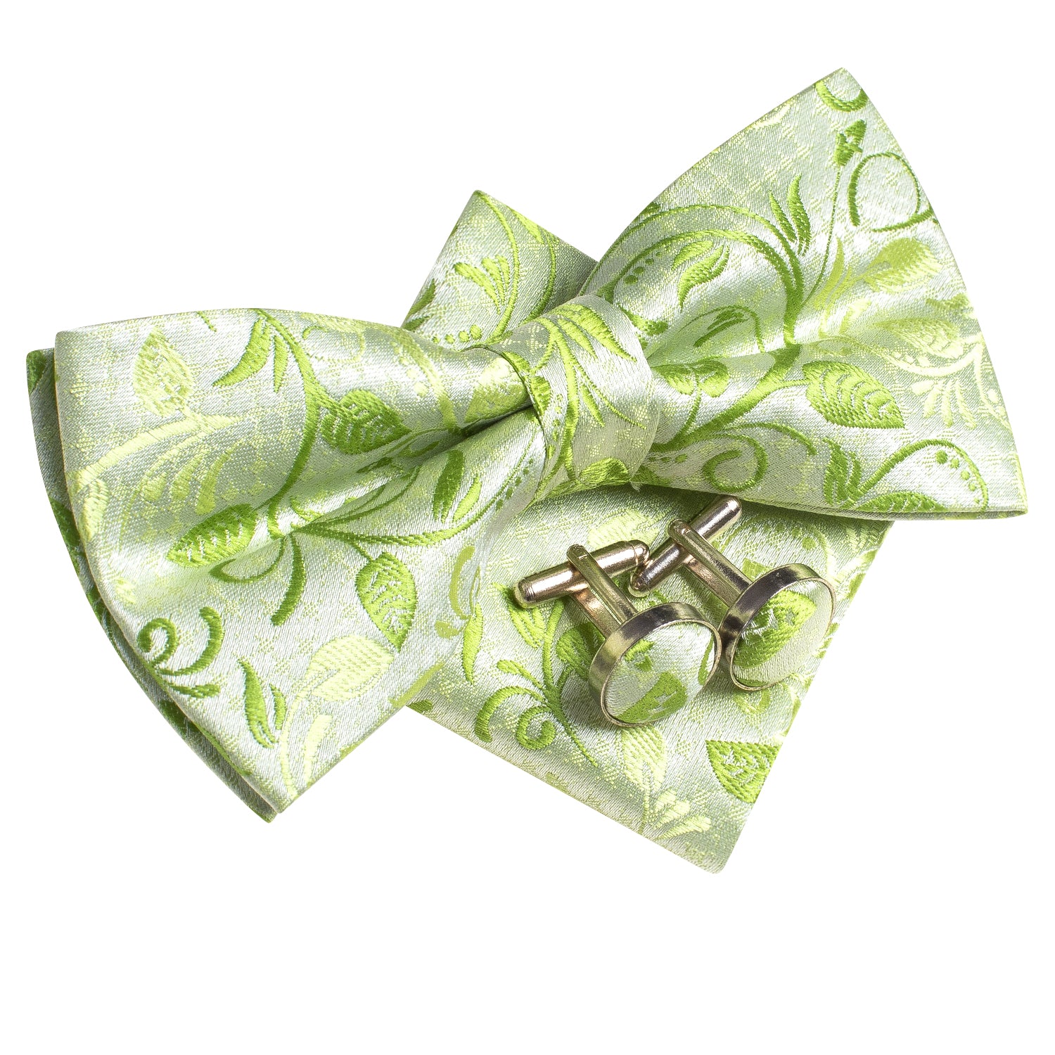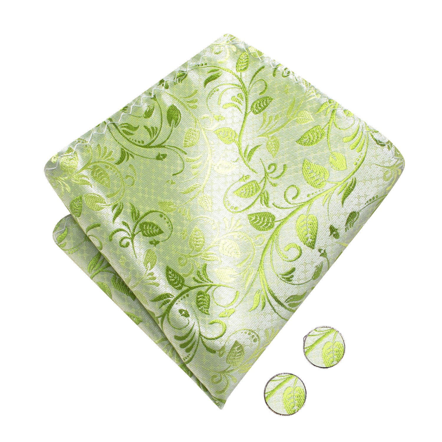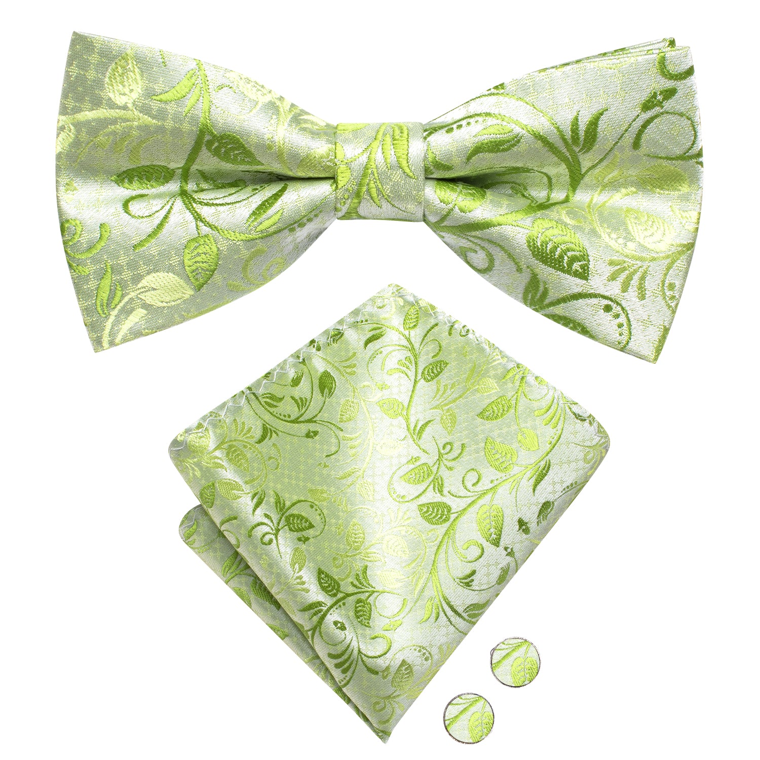 Hi-Tie $10.99 Fresh Green Floral Pre-tied Bow Tie Hanky Cufflinks Pin Set