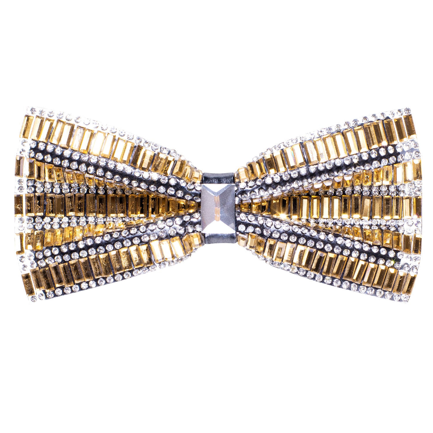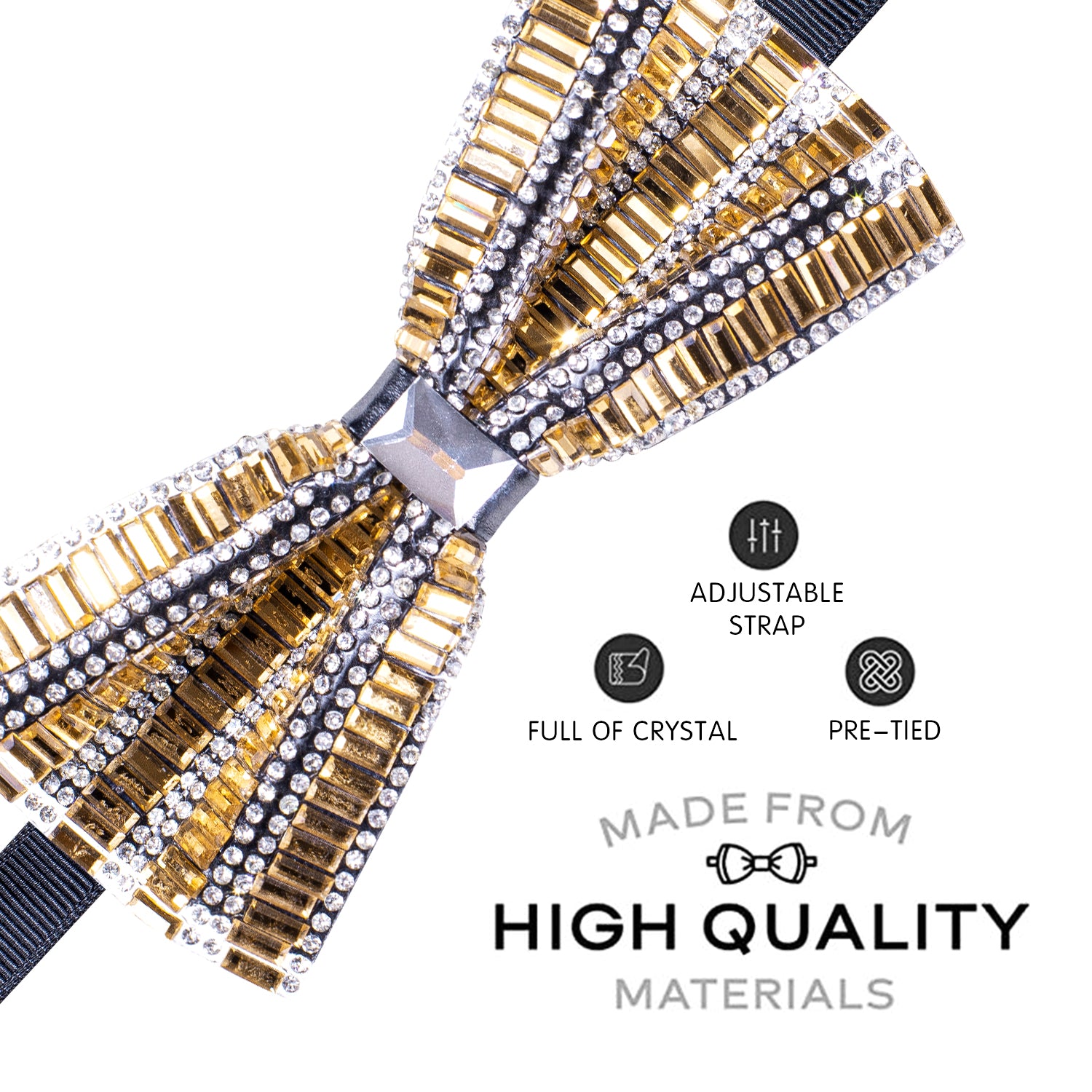 Golden White Rhinestone Pre-tied Adjustable Length Bow Tie