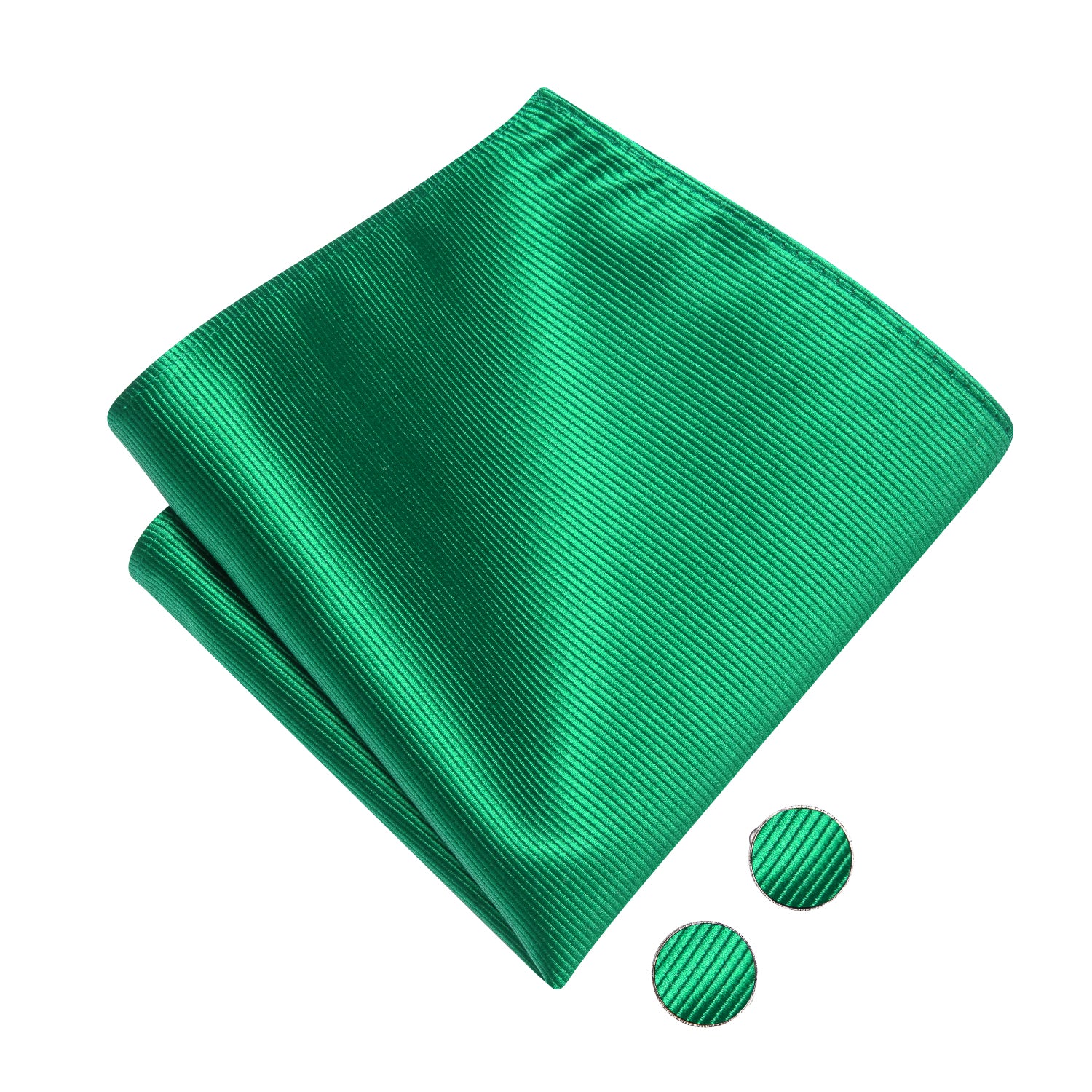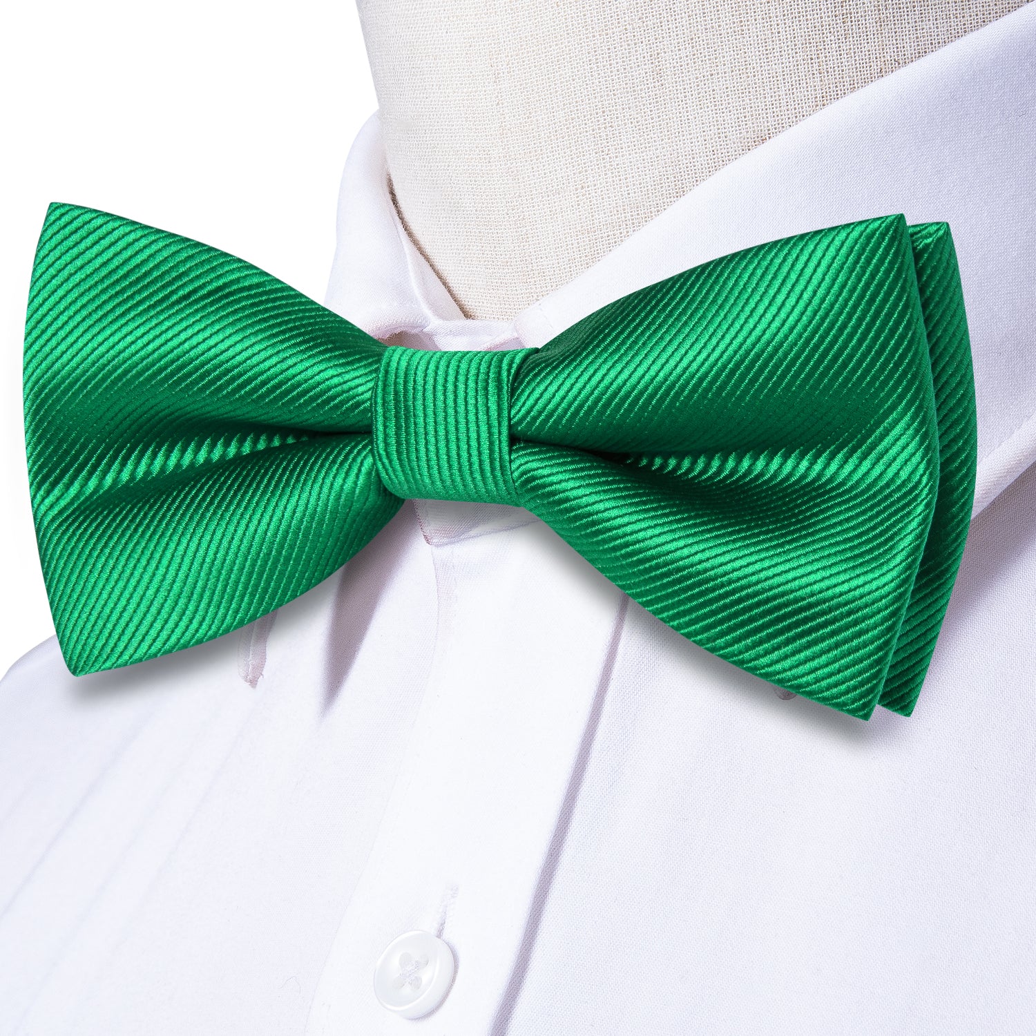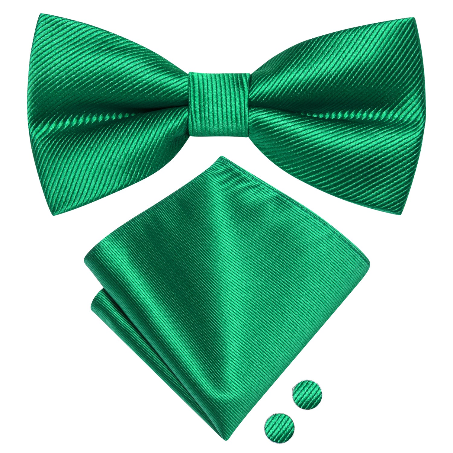 Grass Green Striped Pre-tied Bow Tie Hanky Cufflinks Set