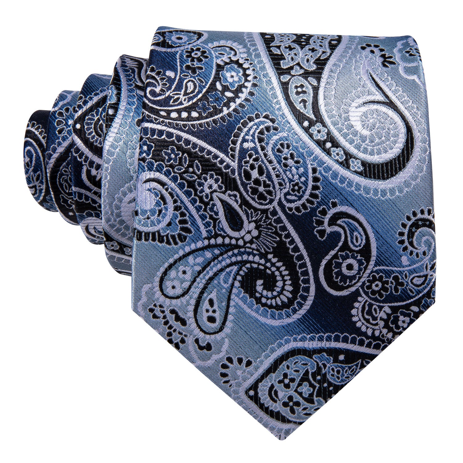 Hi-Tie Grey Sky Blue Necktie Paisley Tie Pocket Square Cufflinks Set