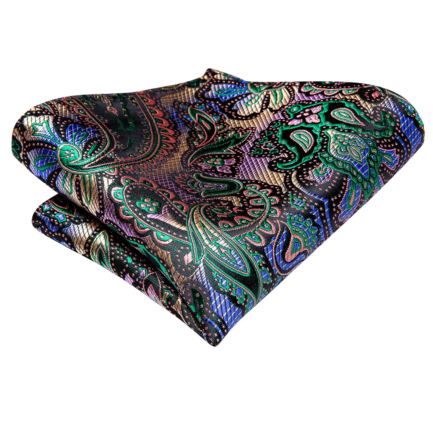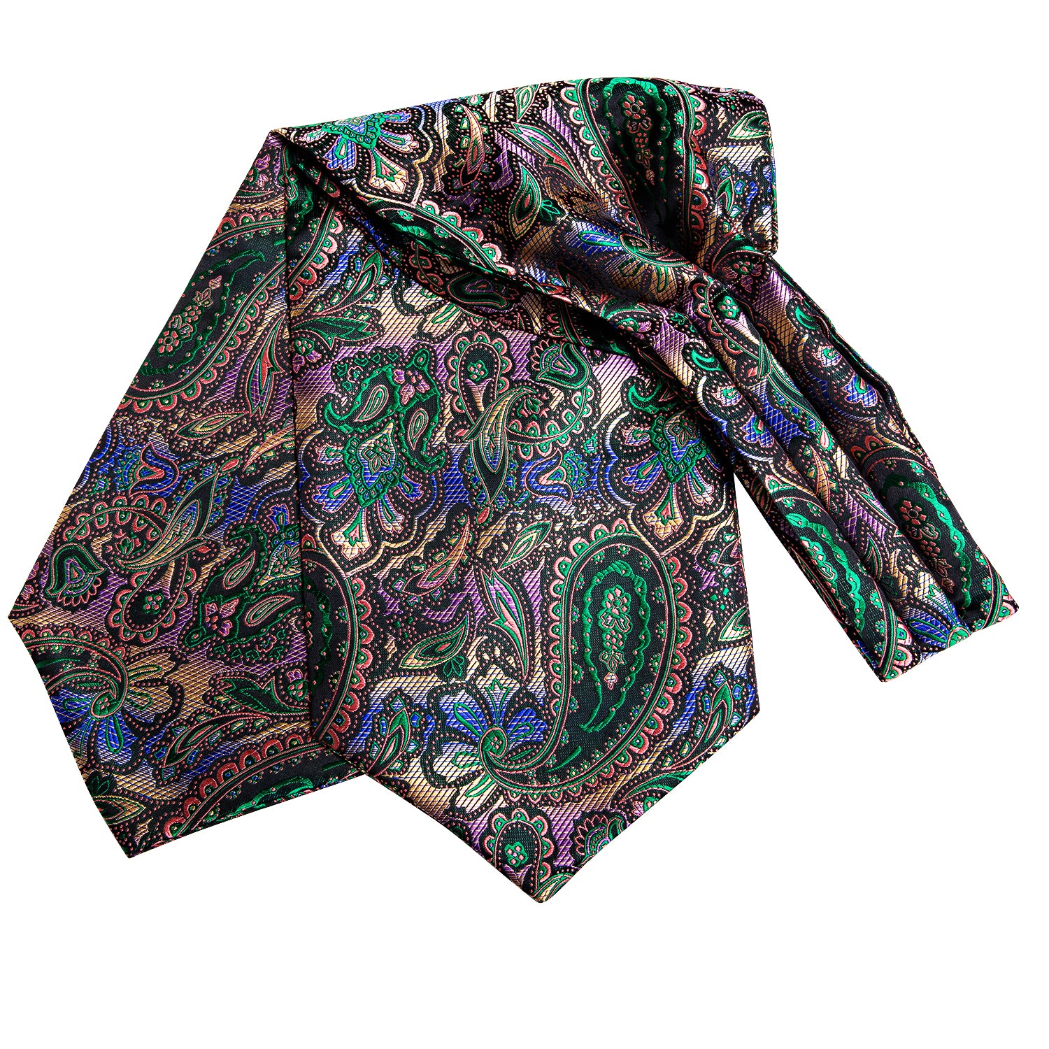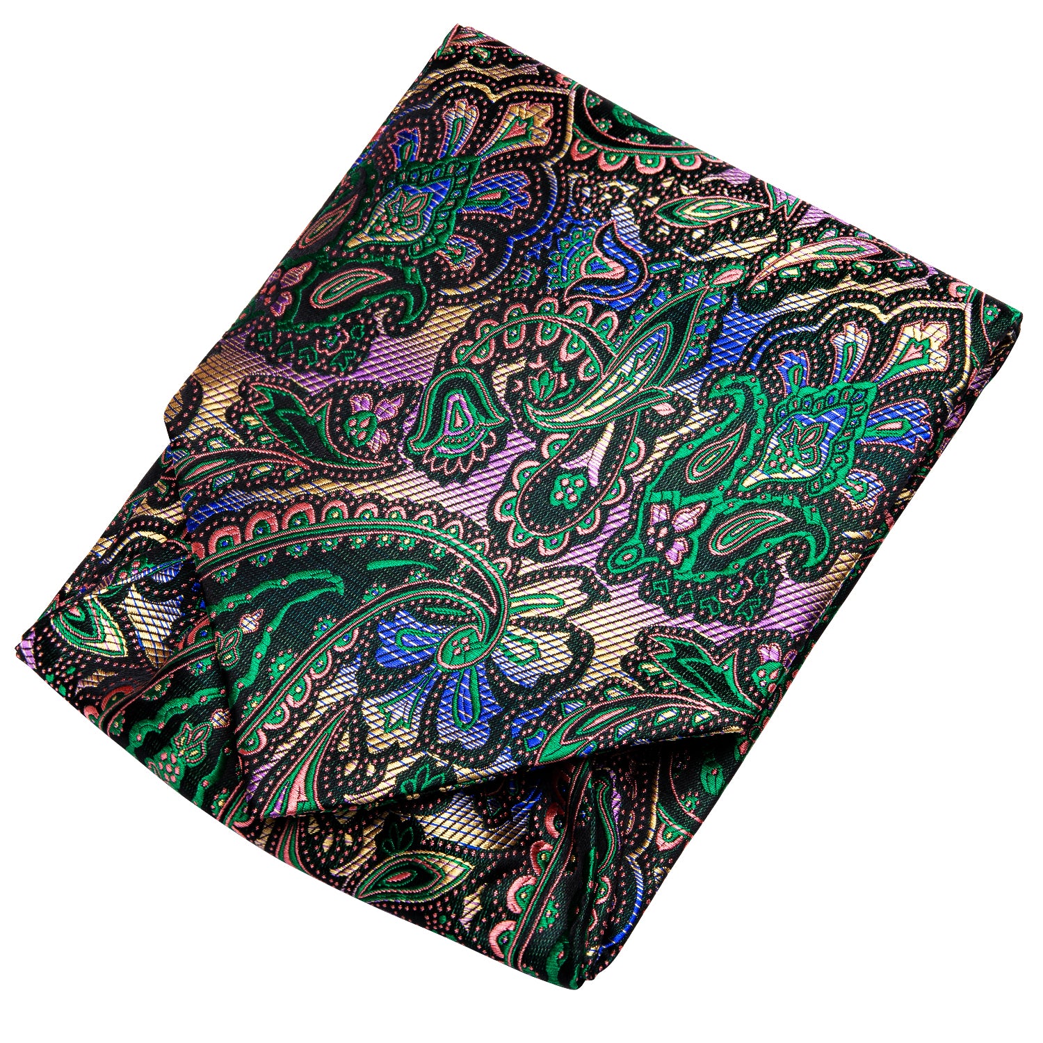 Green Pink Paisley Ascot Pocket Square Cufflinks Set