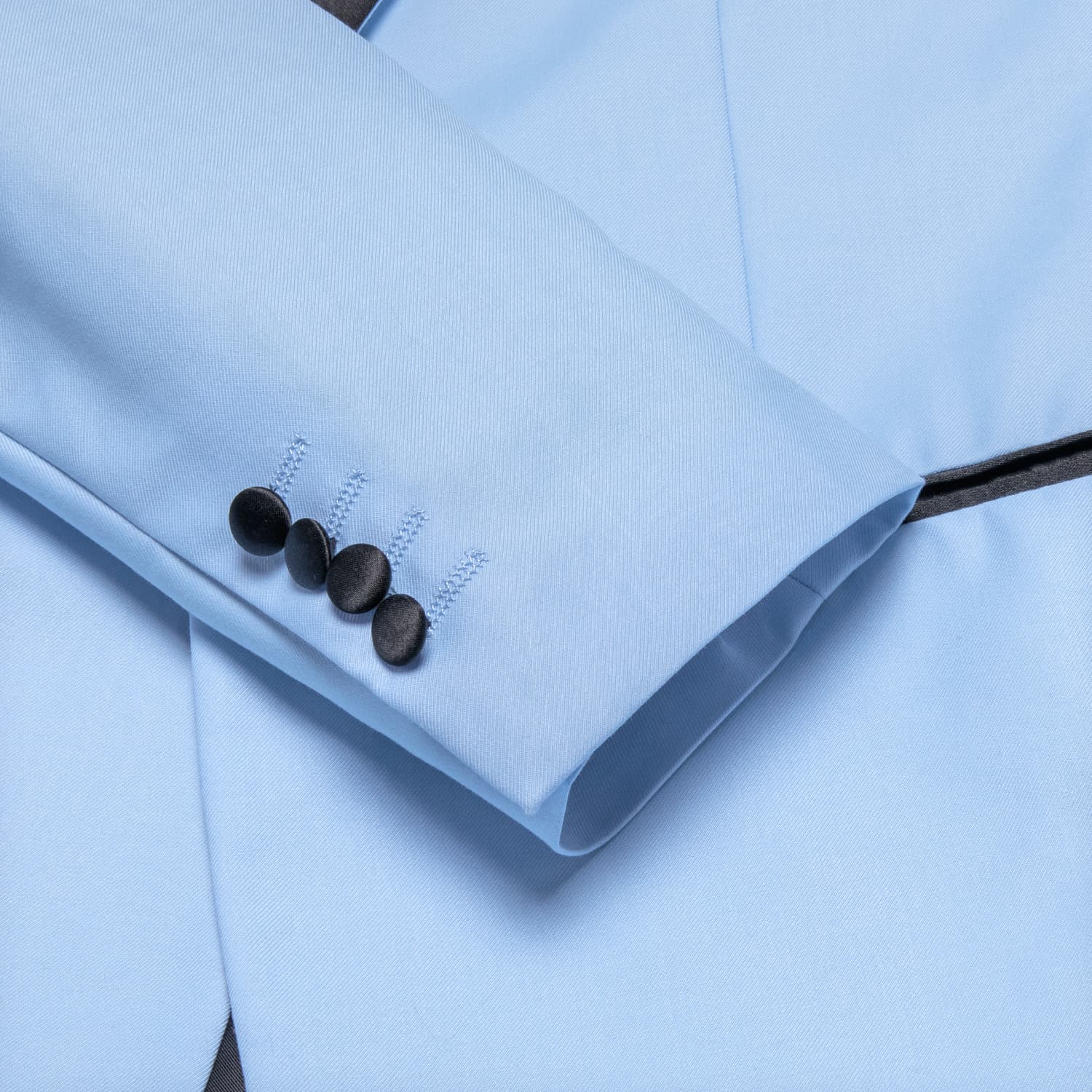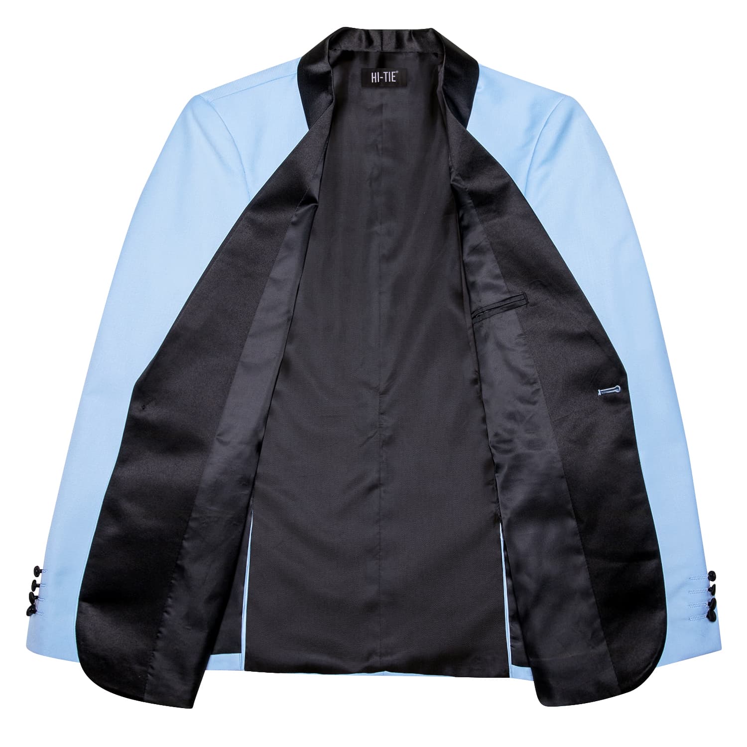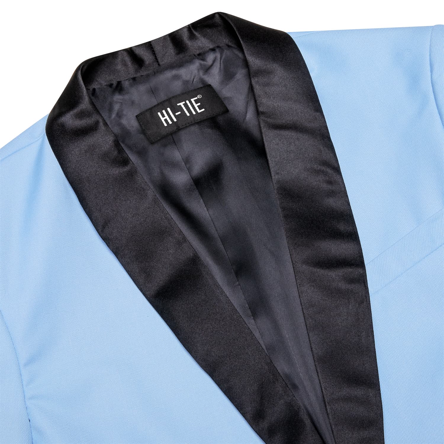 Hi-Tie Black Shawl Collar Sky Blue Solid Blazer Bowtie Suit Set