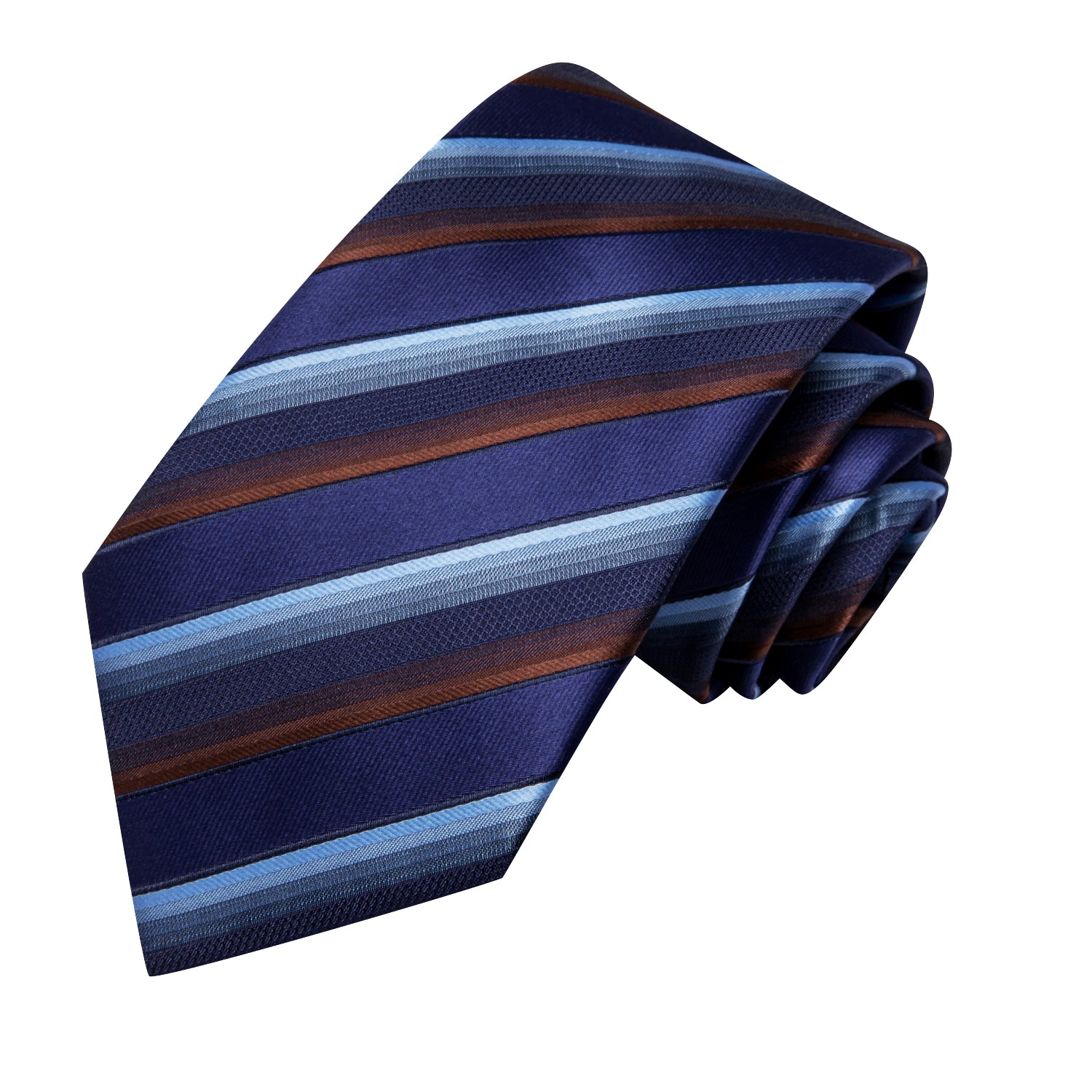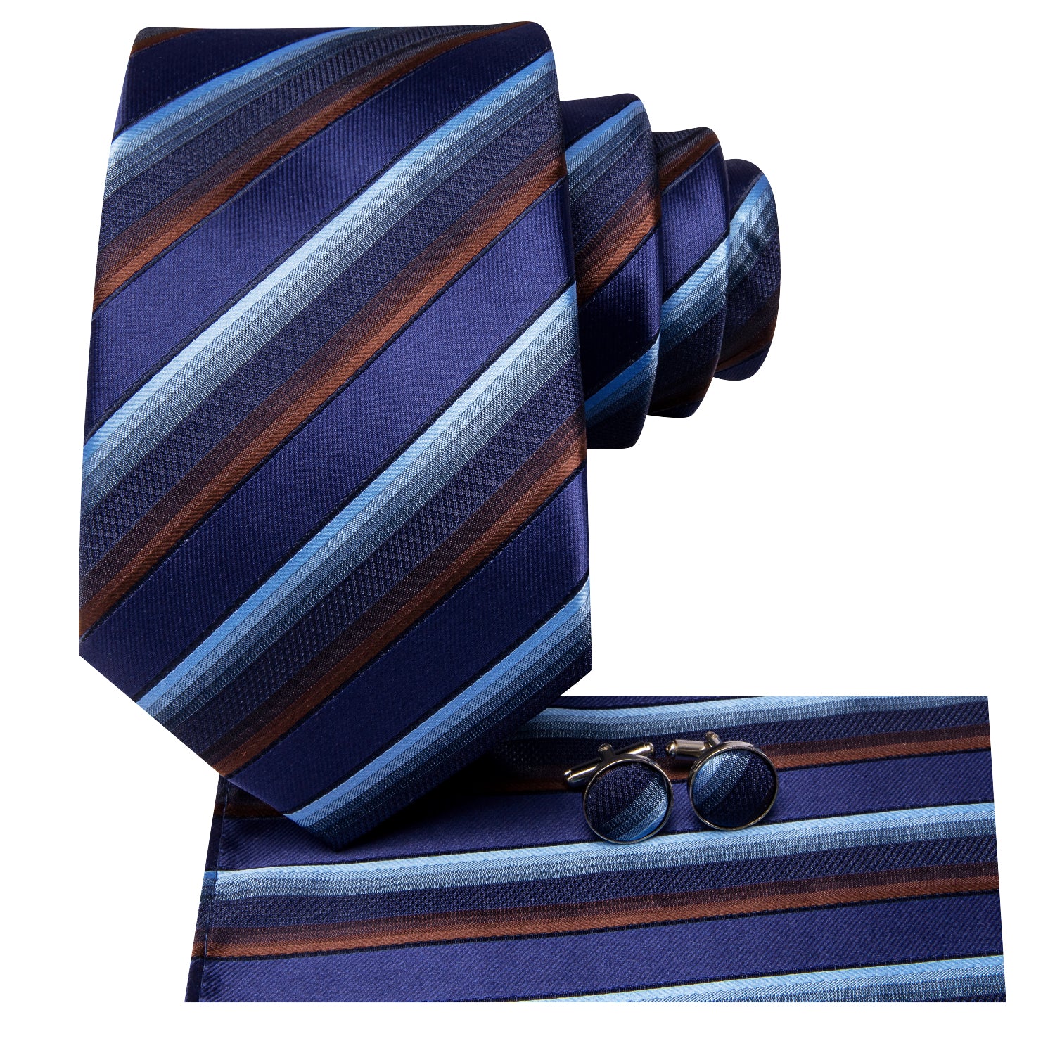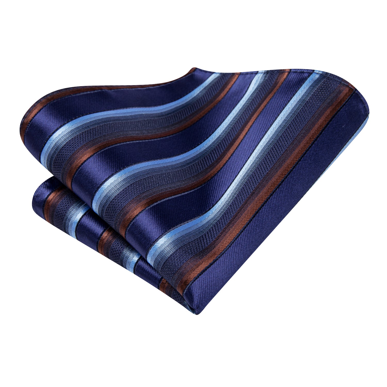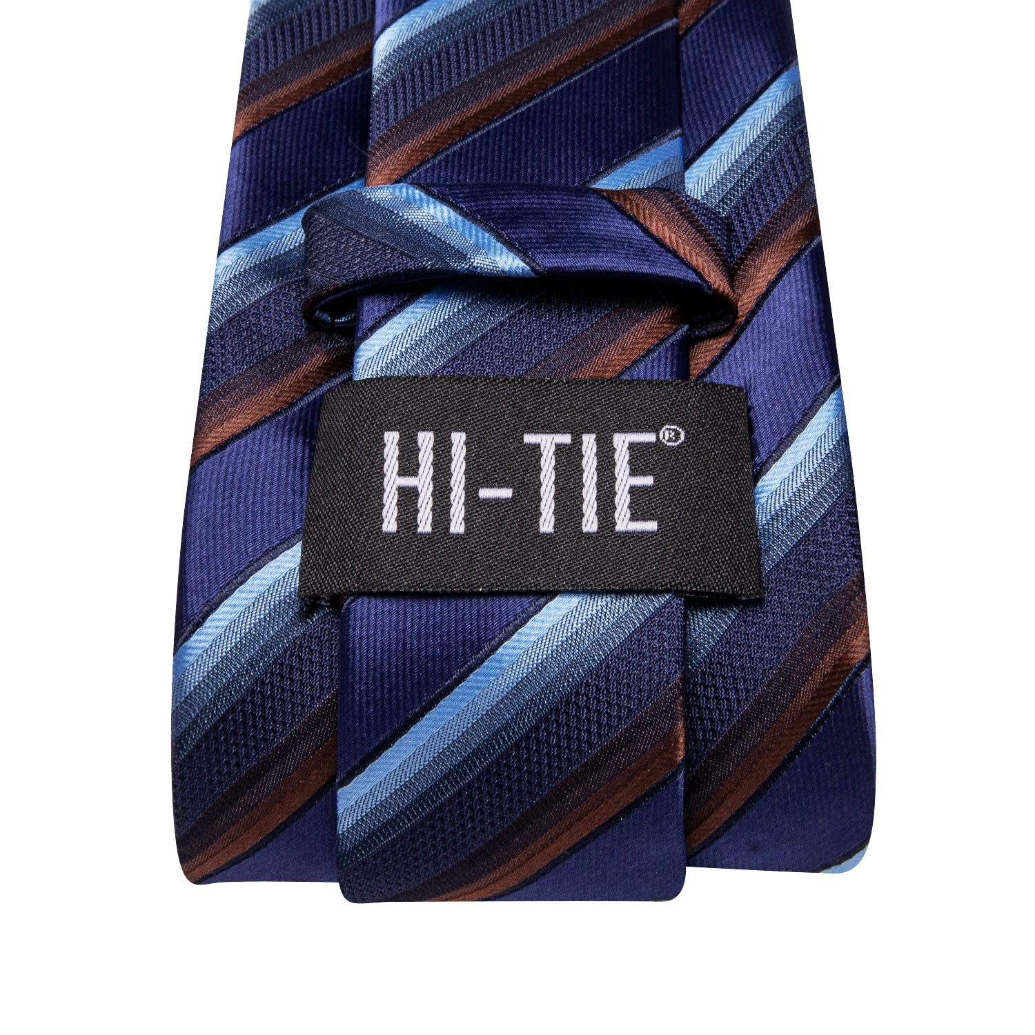 Hi-Tie Blue Red Striped Men's Tie Pocket Square Cufflinks Set