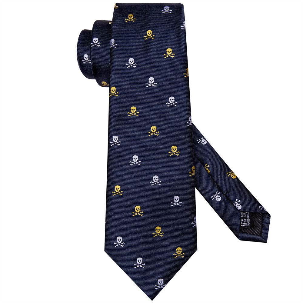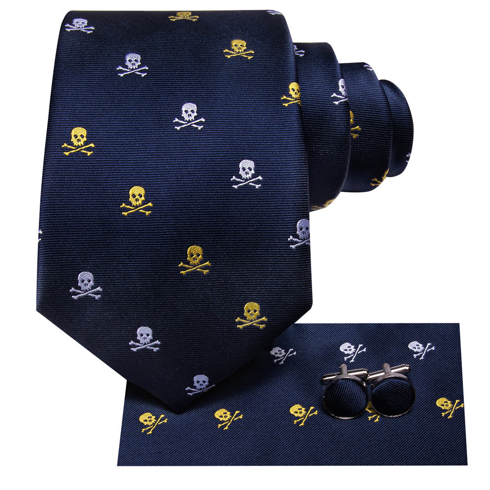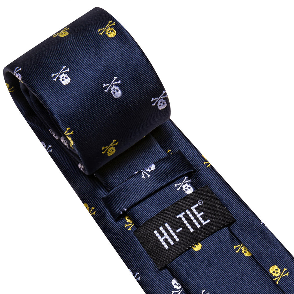Hi-Tie Blue Skull Silk Men's Necktie Pocket Square Cufflinks Set