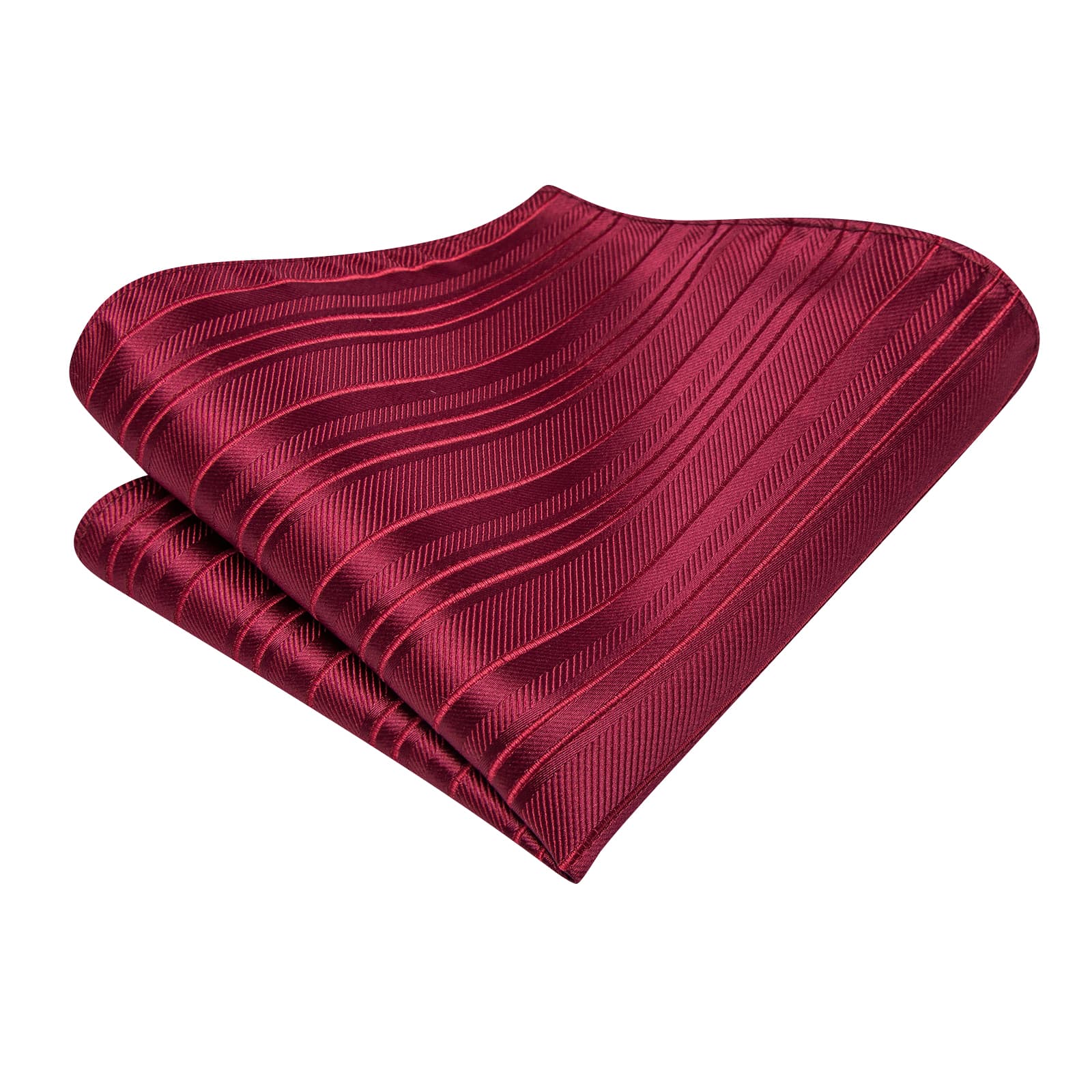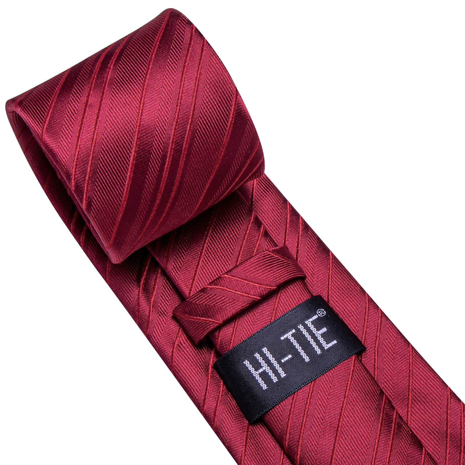 Hi-Tie Burgundy Red Striped Silk Mens Tie Handkerchief Cufflinks Set